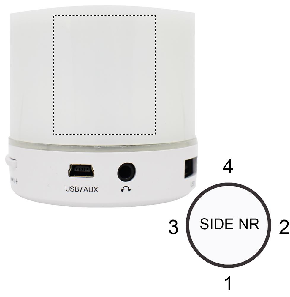 2.1 juhtmevaba kõlar LED-tule indikaatoriga ABS-is. 3 värvi muutvat valgust. Kaasas 1 taaslaetav liitiumaku 450 mAh. Sisaldab SD-kaardi porti ja AUX/USB-kaablit. Käed vabad kõne funktsioon. Väljundandmed: 3W, 4 Ohm. Mänguaeg ca. 2h.