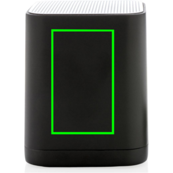 Juhtmeta 3W kõlar, mida saab kohandada teie logoga ABS-pinnal. Logo süttib teie kaubamärgi optimaalseks eksponeerimiseks. Kõlar kasutab BT 4.2 sujuvaks ühenduseks kuni 10 meetri kaugusel. Sisseehitatud 400 mAh aku võimaldab ühe laadimisega mängida muusikat kuni 4 tundi ja uuesti laadimine toimub 1 tunniga.