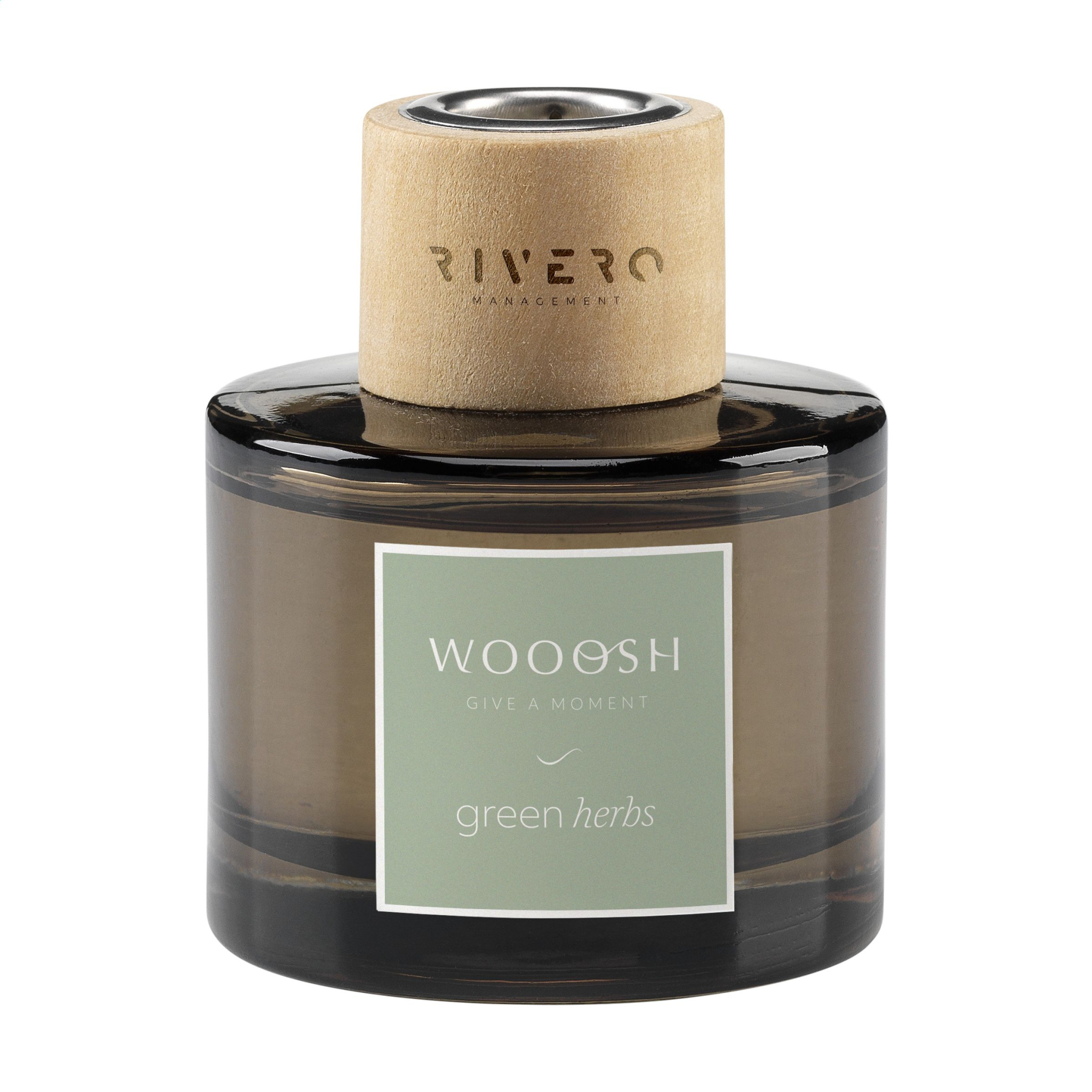 Dekoratiivne klaasist parfüümipudel, puidust aktsentidega kaubamärgilt Wooosh. See pudel on täidetud imeliselt lõhnava Green Herbsi parfüümiõliga. Asetades pulgad parfüümipudelisse, parfüüm imendub ja õli aurustub järk-järgult. Õhk täitub vürtsika ja loodusliku aroomiga, mis kutsub esile harmoonia, rahu ja lõõgastuse tunde. Samas on värskendav ja meeldiv lõhn ideaalne jooga ja meditatsiooni harjutamiseks, aga kasulik ka tervisekeskuses, vannitoas või elutoas. Lõhna intensiivsust saab reguleerida, asetades pudelisse rohkem või vähem pulgakesi. See pudel on täidetud 75 ml parfüümiõliga ning kaasas 6 minipulka ja kasutusjuhend. Iga toode tarnitakse luksuslikus Woooshi kinkekarbis.