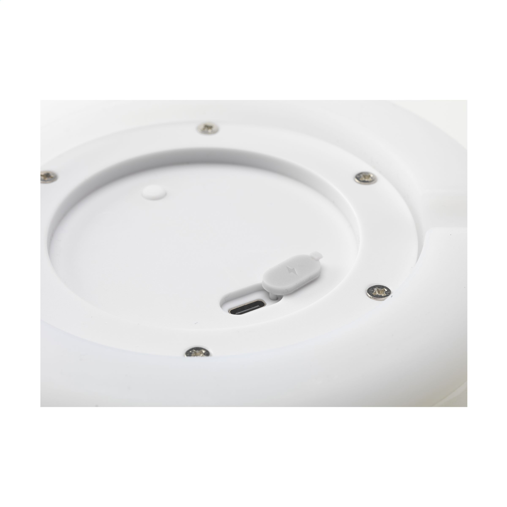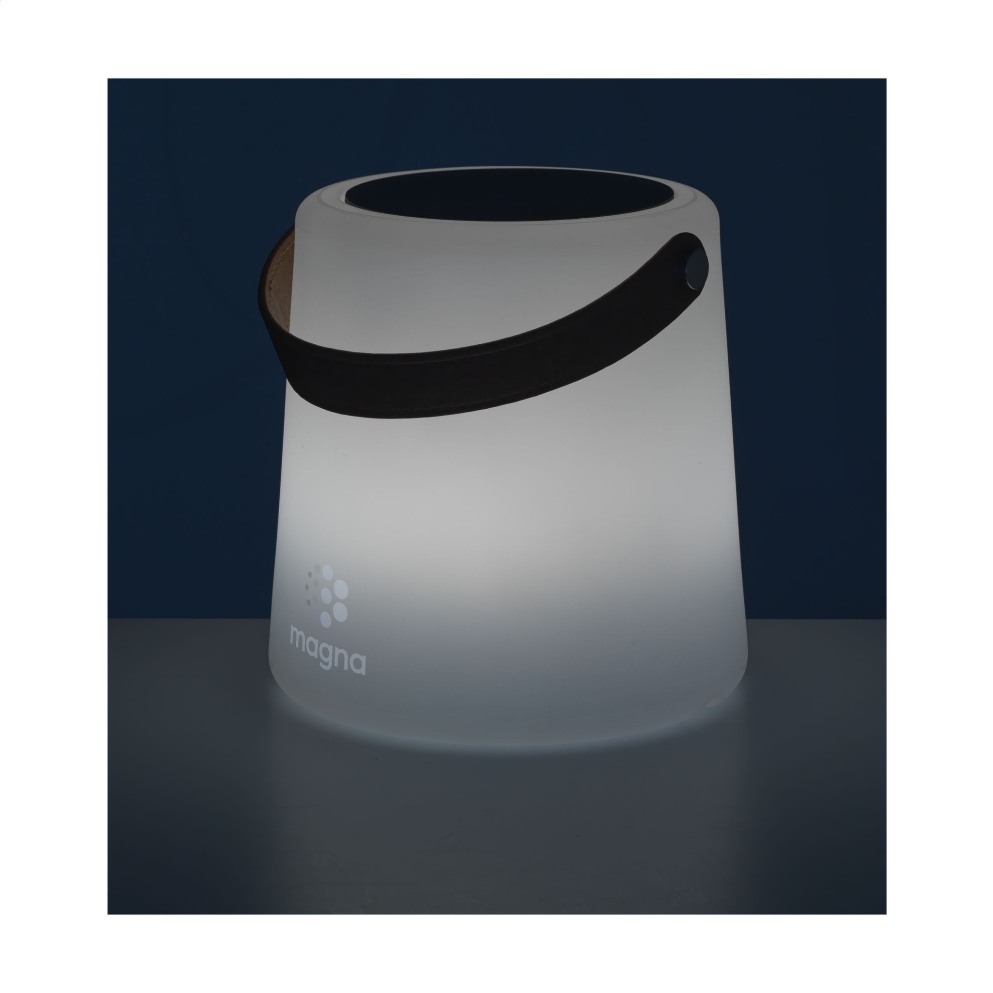 Laetav päikeselamp kaubamärgilt Wooosh. See lamp on varustatud integreeritud päikesepaneeliga lambi ülaosas ja tugeva kunstnahast käepidemega. Piimvalge plastvari summutab LED-lampi kergelt, kiirgades pehmet sooja valgust. Selle lihtsa disainiga kaasaegset juhtmeta lampi on lihtne teisaldada ja seetõttu saab seda kasutada igas keskkonnas, nii sise- kui ka välistingimustes. Seda lampi laeb päikesevalgus. Kui paneel pole piisavalt energiat saanud, saab lampi laadida kaasasoleva USB-C laadimiskaabliga. Seda saab juhtida ka distantsilt kaasasoleva puldiga. Kaunis pilkupüüdev lamp atmosfäärilisteks hetkedeks nii siseruumides kui väljas. Kaasas laetav aku (800 mAh) ja kasutusjuhend. Iga toode tarnitakse eraldi pruunis pappkarbis.