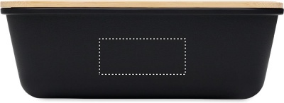 2-osainen lounassetti, jossa kaksiseinäinen tyhjiöeristyspullo kierrätetystä ruostumattomasta teräksestä (90 % kierrätettyä ruostumatonta terästä ja 10 % ruostumatonta terästä) ja lounasrasia kierrätys PP:stä, jossa bambukansi ja RPET-kuminauha. Vuotamaton.
