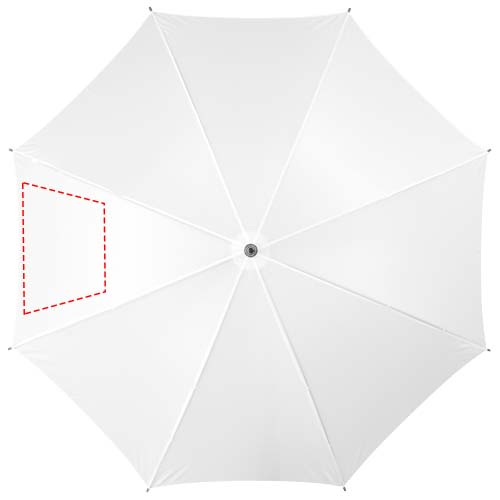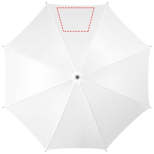 23" sateevarjo, jossa puukahva ja runko sekä metalliruoteet.