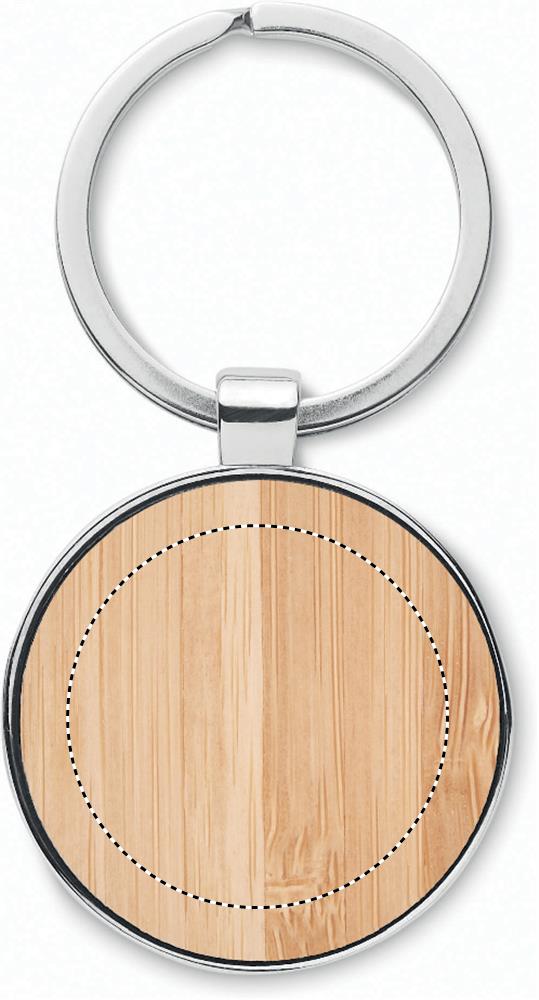 Ympyrän muotoinen sinkkiseoksesta valmistettu avaimenperä bambu yksityiskohdalla. Luonnollisen materiaalin (bambu) vuoksi, tuotteiden värissä/ koossa saattaa olla erinäisyyksiä ja tämä voi vaikuttaa painatuksen lopputulokseen.
