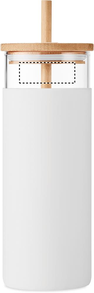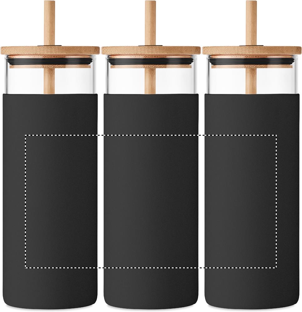 Borosilikaattilasinen 450 ml juomalasi, bambu kannella-/ pillillä ja silikonisella vyötteellä. Tuote voi kuumentua ulkoisesti käytössä. Borosilikaattilasiin ei voi kaiverruttaa. Luonnollisen materiaalin (bambu) vuoksi, tuotteiden värissä/ koossa saattaa olla erinäisyyksiä ja tämä voi vaikuttaa painatuksen lopputulokseen.