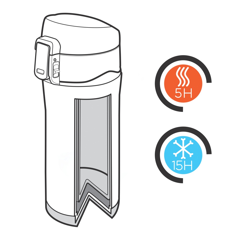 Kaksoisseinäinen tyhjiömuki ruostumattomasta teräksestä, mikä pitää juoman lämpimänä jopa 6 tuntia ja viileänä jopa 15 tuntia. Kansi on lukittava, mikä estää vuotoja ja läikkymisen riskiä. Kansi on helppo pitää puhtaana ja siten hygieenisenä, ja se voidaan pestä astianpesukoneessa. Uniikki design mahdollistaa käytännöllisen ja turvallisen juomisen. Muki sopii kaikkien autojen mukitelineisiin. Kapasiteetti 300ml.