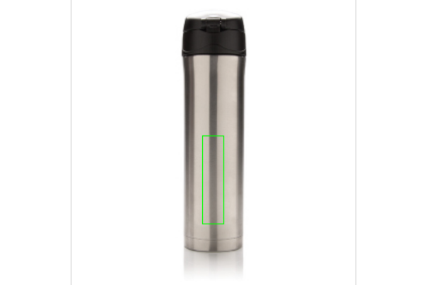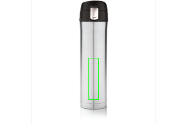 Kaksiseinämäinen vakuumipullo ruostumattomasta teräksestä, mikä pitää juomasi lämpimänä jopa 5 tuntia ja viileänä jopa 15 tuntia. Kansi on lukittava, mikä estää vuotojen mahdollisuutta. Kansi on helppo pitää puhtaana ja se voidaan pestä astianpesukoneessa. Tuotteen muotoilu mahdollistaa käytännöllisen ja turvallisen juomisen suoraan pullosta. Sopivan kokoinen auton juomatelineeseen. Kapasiteetti: 450ml.