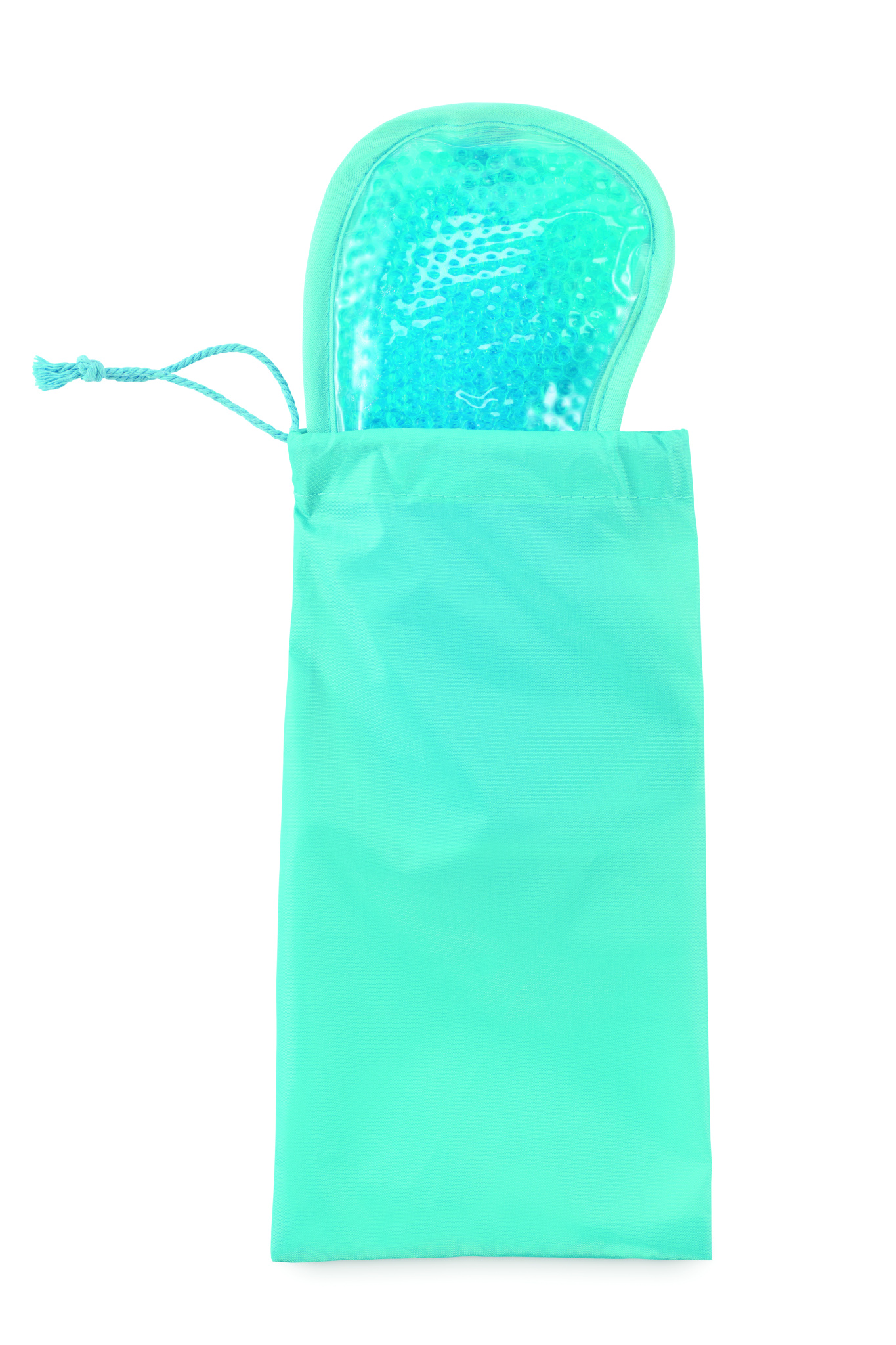 Käännettävä viilentävä silmänaamari, joka on täytetty geelihelmillä, mukaan lukien 190T polyesterinen kiristysnyörillinen pussi.