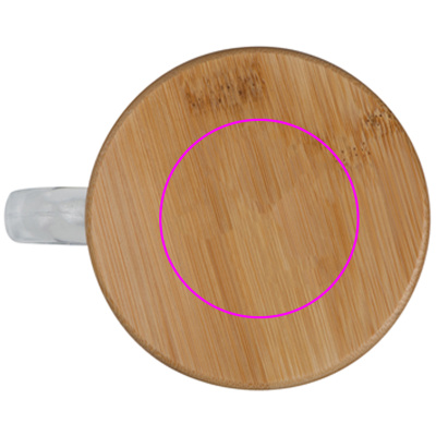 Kaksiseinäinen lasikuppi 350 ml:n tilavuudella ja bambukannella, johon logosi kaiverretaan.