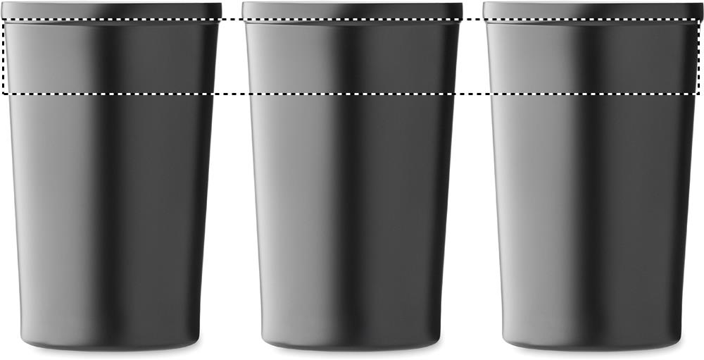 Kaksiseinäinen tyhjiöeristetty juomamuki kierrätetystä ruostumattomasta teräksestä (90 % kierrätettyä ruostumatonta terästä ja 10 % ruostumatonta terästä), jossa on keraaminen sisäkerros. Tilavuus: 350 ml.