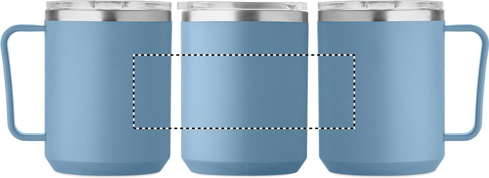 Kaksinkertainen muki, jonka sisäosa on 90 % kierrätettyä ruostumatonta terästä ja 10 % ruostumatonta terästä, ja ulkopinta kierrätettyä polypropeenia. Mukana läpinäkyvä AS-liukukansi. Tilavuus 400 ml.