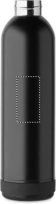 Kaksiseinäinen tyhjiöeristetty pullo kierrätetystä ruostumattomasta teräksestä (90 % kierrätettyä ruostumatonta terästä ja 10 % ruostumatonta terästä) ja silikoninen kantokahva, jossa on irrotettava 3 W langaton kaiutin. Tilavuus: 500 ml. 500 mAh akku. Vuotamaton.