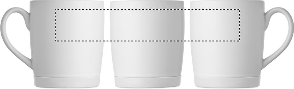 Keraaminen muki, jossa valkoinen mattapinta ja silikonipohja vakauden takaamiseksi. Tilavuus 300 ml. Yksittäispakattu valkoiseen pahvilaatikkoon.