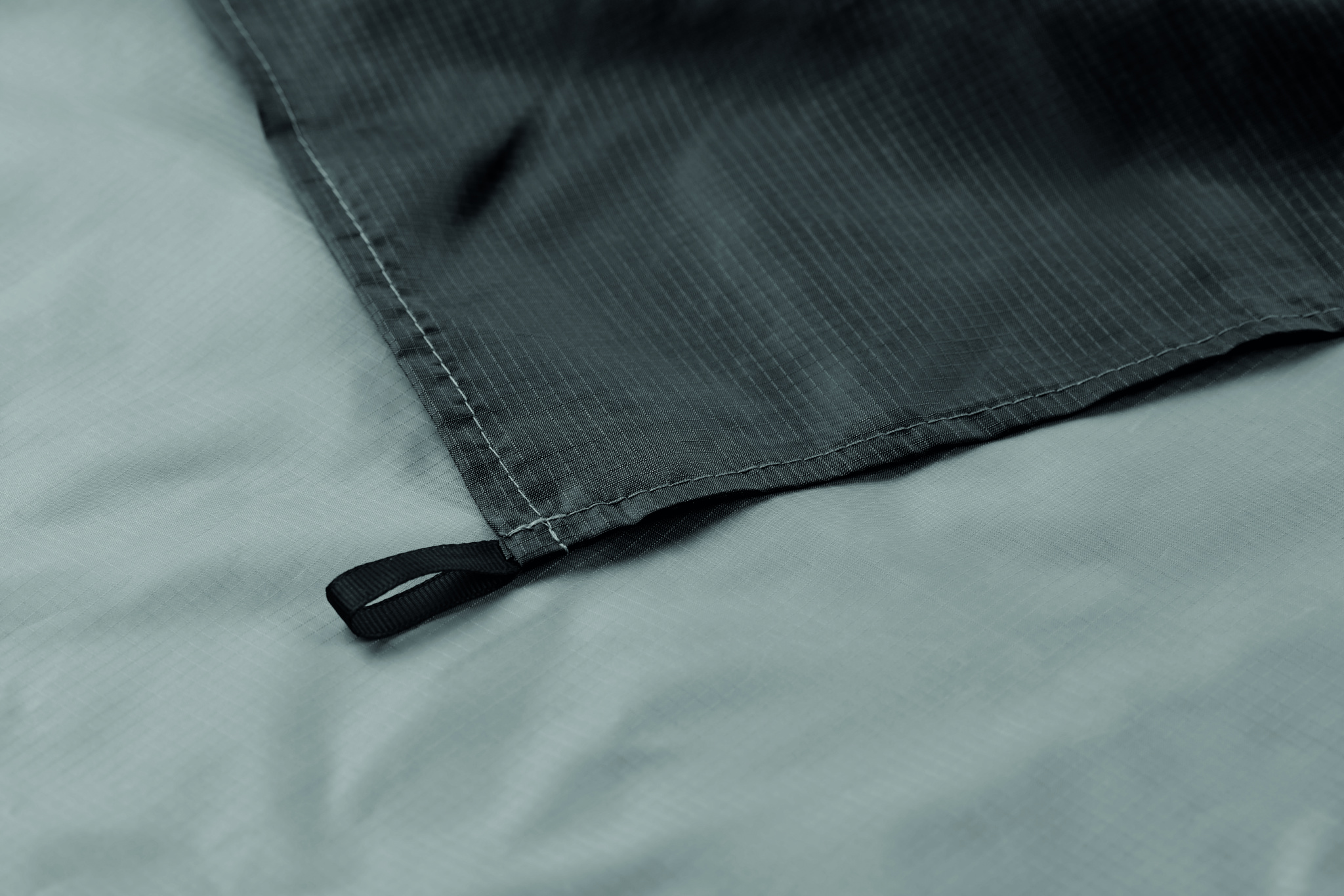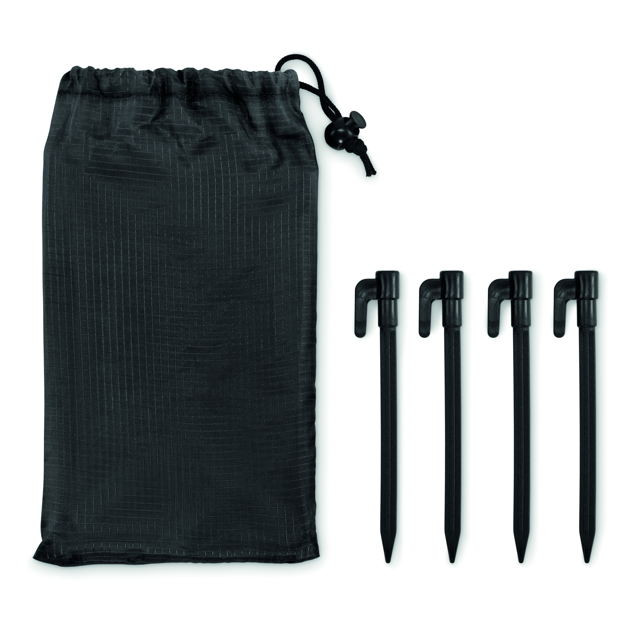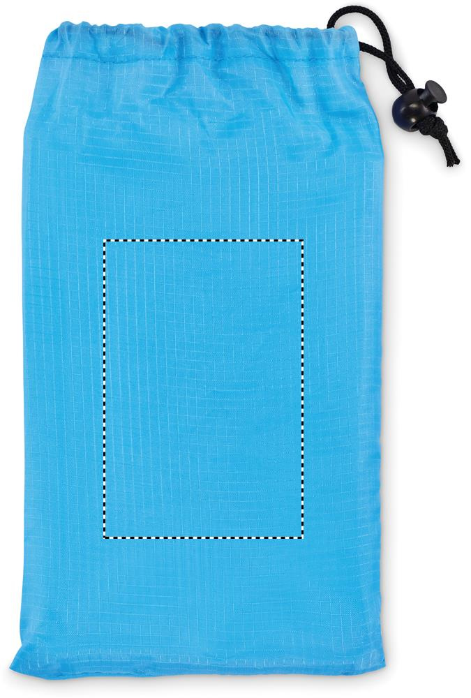 Kevyt rantamatto 210T polyesteristä, mitat 200 x 210 cm. Mukana neljä mustaa koukkua ja yhteensopiva kiristysnyörillä varustettu pussi helppoa kantamista varten.