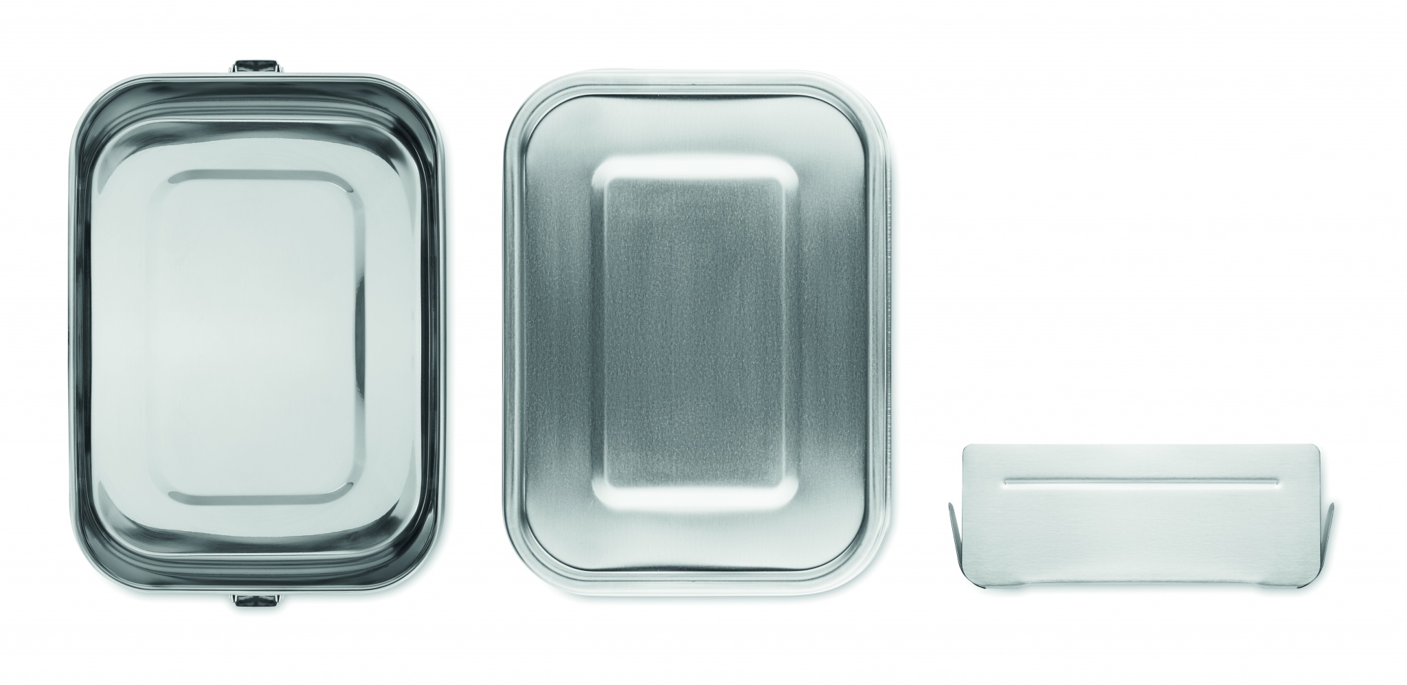 Ruostumattomasta teräksestä valmistettu 1200 ml lounaslaatikko, vahvoilla sivusoljilla ja sisälllä sisäinen jakaja.
