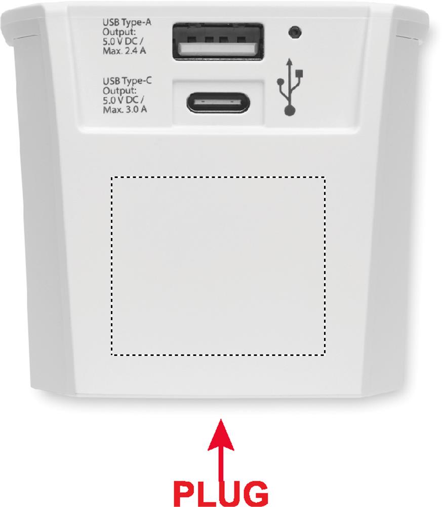 SKROSS® MUV USB A/C. Maailmanmatka-adapteri, jossa on 15W USB C-tyypin ja 12W A-tyypin portit.