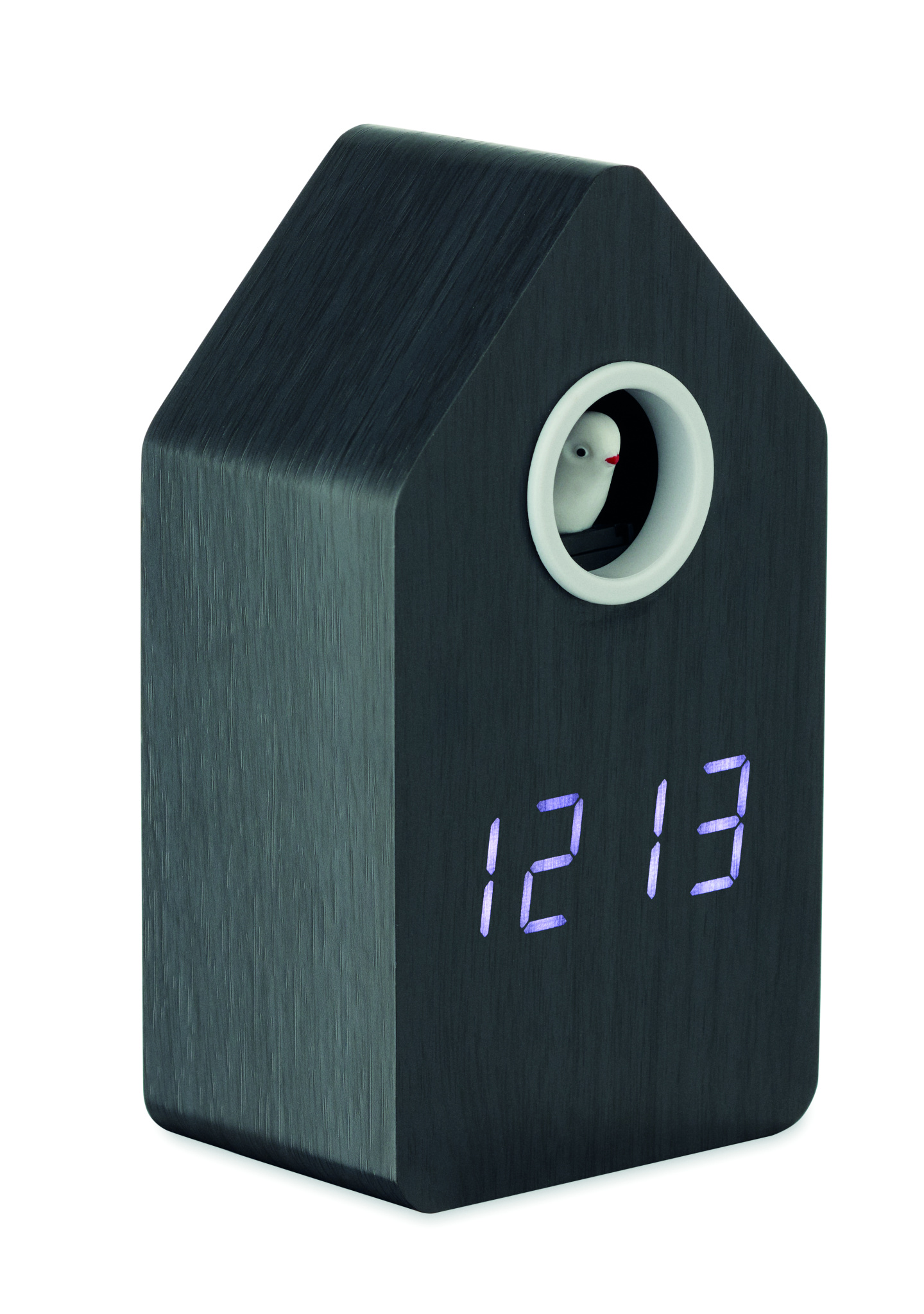 MDF-käkikello, jossa sisäänrakennettu hälytys/lämpötilanäyttö. Lintu tulee ulos joka täysi tunti ja hälytyksen aikana, ja sillä on käen kukkuva ääni. Valkoinen LED-näyttö. Ääni mykistyy automaattisesti klo 22.00–06.00. 5 minuutin torkkuvälit.