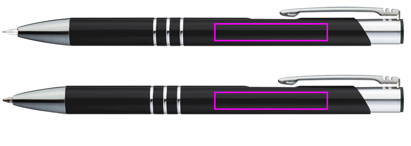 Alumiinista valmistettu kirjoitussetti, joka koostuu kuulakärkikynästä, jossa on sininen kirjoitus suuri täyttöpakkaus ja mekaaninen lyijykynä, jokaisessa koristerenkaat. Logosi kaiverretaan leikkeen oikealle puolelle.