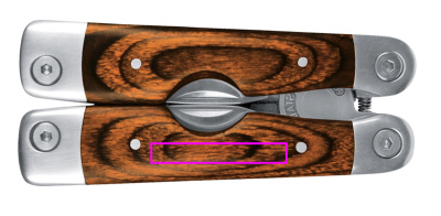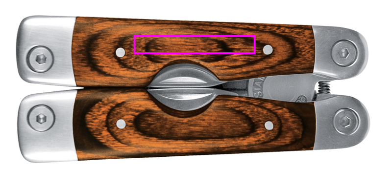 Ruostumattomasta teräksestä valmistettu monitoimityökalu, jossa tyylikkäät puukuoret kahvoissa: isot pihdit leikkaustoiminnolla, pieni saha mittayksiköllä ja viilalla, veitsi, Phillips-ruuvimeisseli, kolme eri leveyttä ruuvimeisseliä, pieni veitsi kaapelieristeen poistoaineella ja tölkinavaaja. Monitoimityökalu toimitetaan vyöpussissa, joten voit aina kuljettaa sitä mukanasi. Kaiverremme logosi kahvaan.