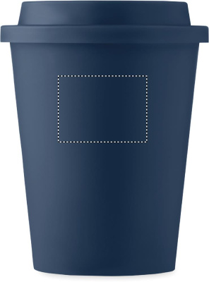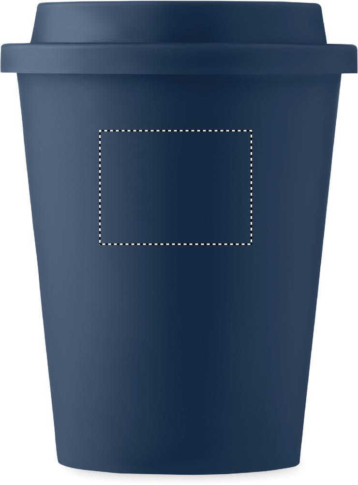 Kaksiseinäinen 300 ml muki PP kannella. Yksinkertainen tumbler-muki, joka pitää juomasi lämpimänä pitkään. Kansi on tiivis eikä siinä ole juoma-aukkoa.