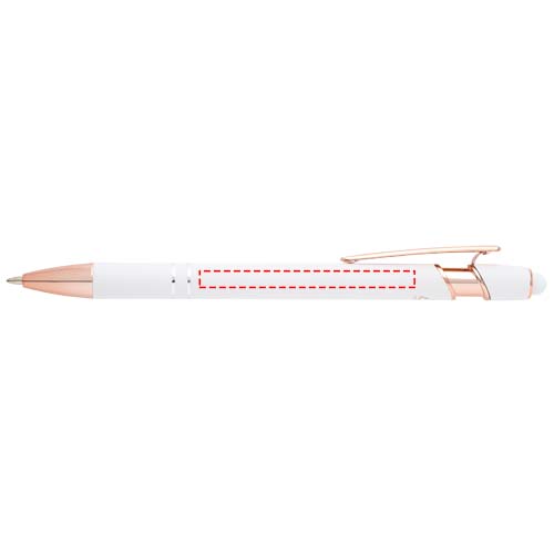 Ruusukullanvärisessä Nanna kuulakärkikynässä on kierrätetystä alumiinista valmistettu runko ja silikoninen kosketuskynä. Se vähentää myös kaatopaikoille päätyvän jätteen määrää ja auttaa säästämään luonnonvaroja kasvihuonepäästöjen vähentämiseksi. Musteen väri: Musta. Kirjoituspituus: 800 metriä. Lyijyn paksuus: 1,0 mm.