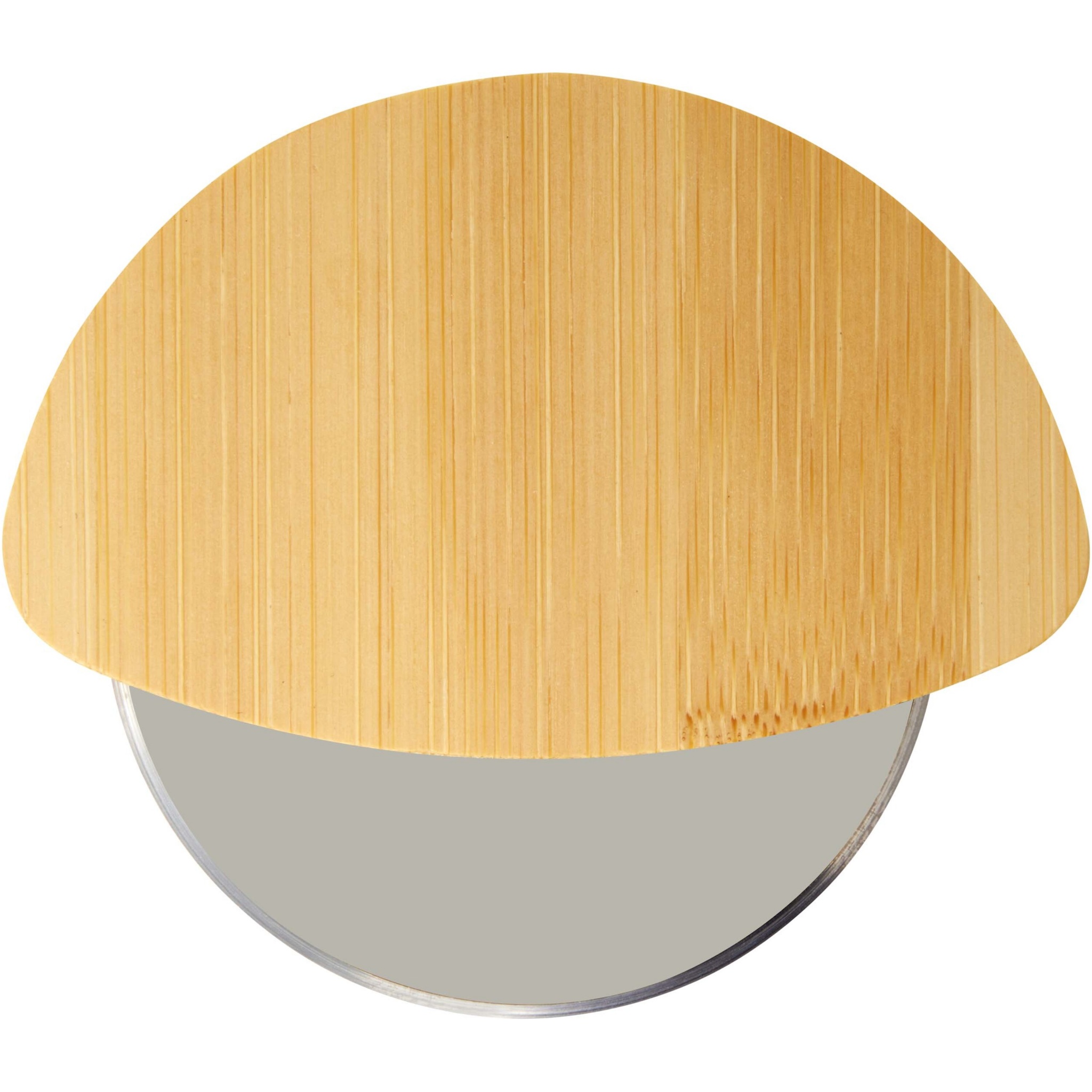 Pizzaleikkuri bambukahvalla ja ruostumattomasta teräksestä valmistetulla terällä.