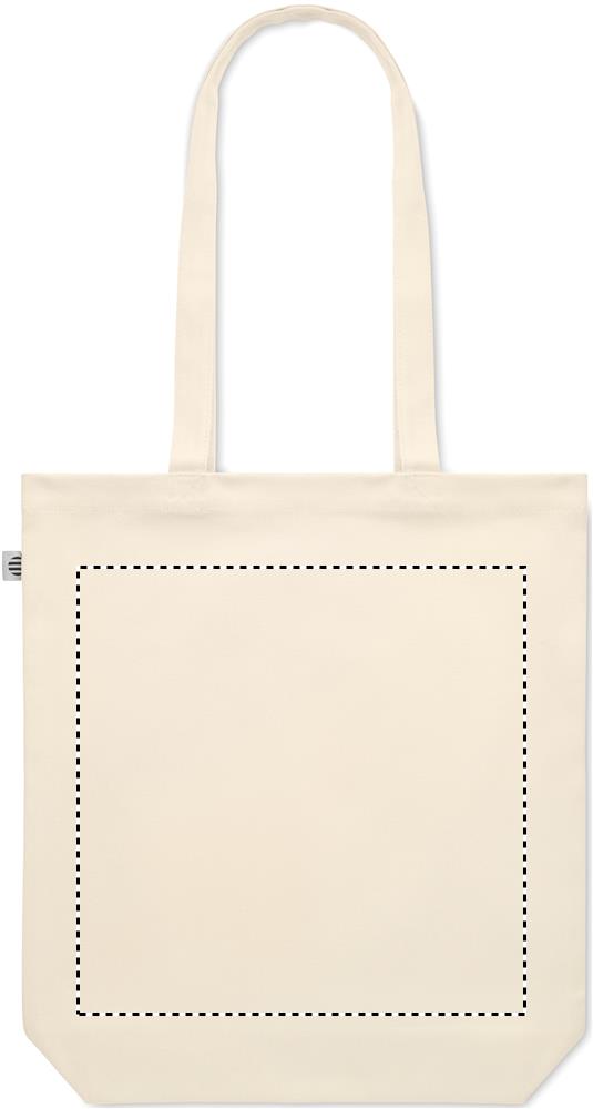 Luomupuuvillainen canvasostoskassi pitkillä kahvoilla ja pohjalevyllä. 270 gr/m².