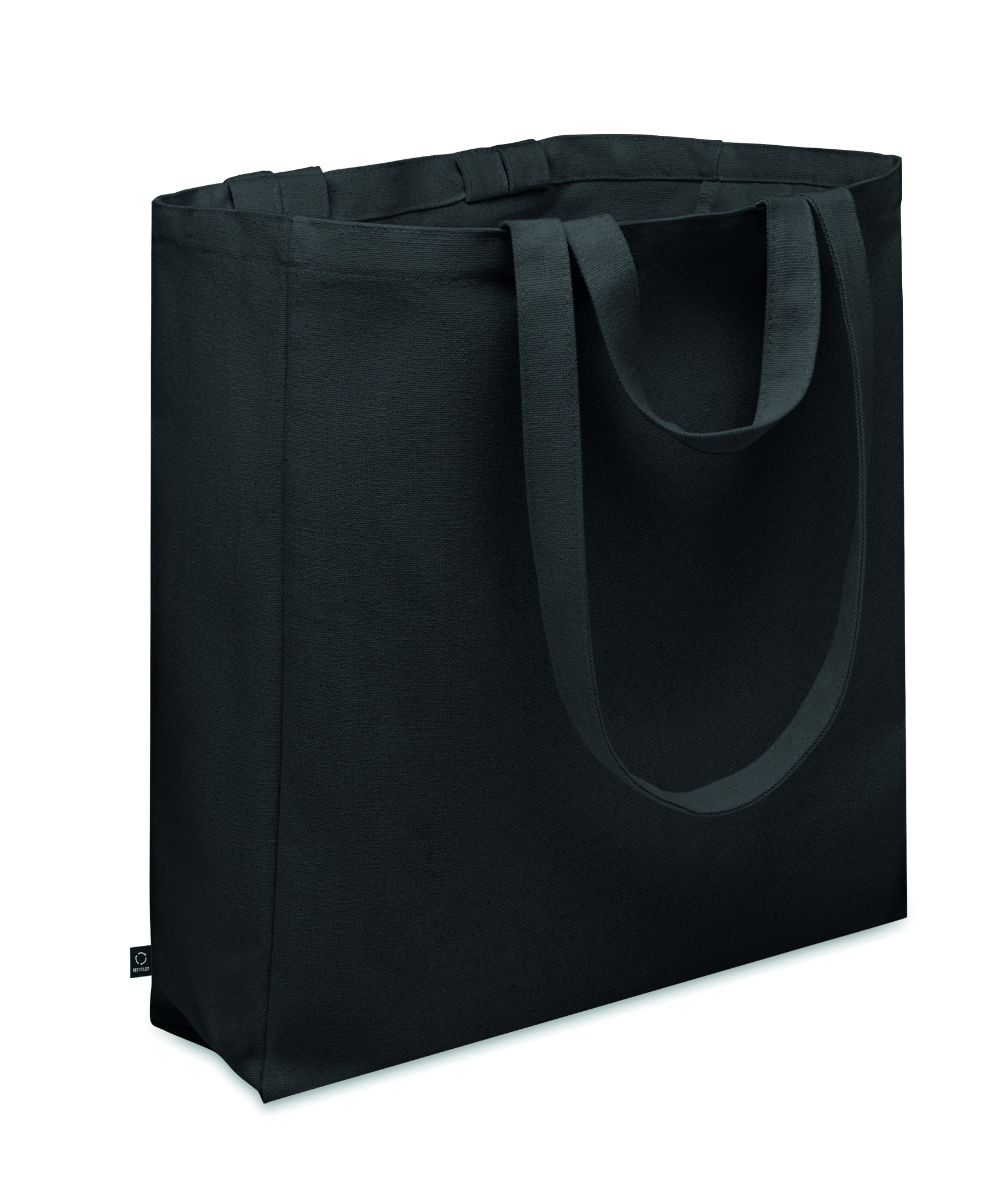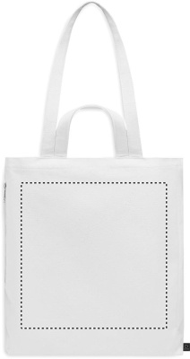Kierrätysmateriaalista valmistettu ostos- tai rantakassi lyhyillä kantokahvoilla. Kassissa on vetoketjullinen sivutasku. Materiaali 70 % kierrätettyä puuvillaa/ 30 % kierrätettyä polyesteriä, 380 gr/m².