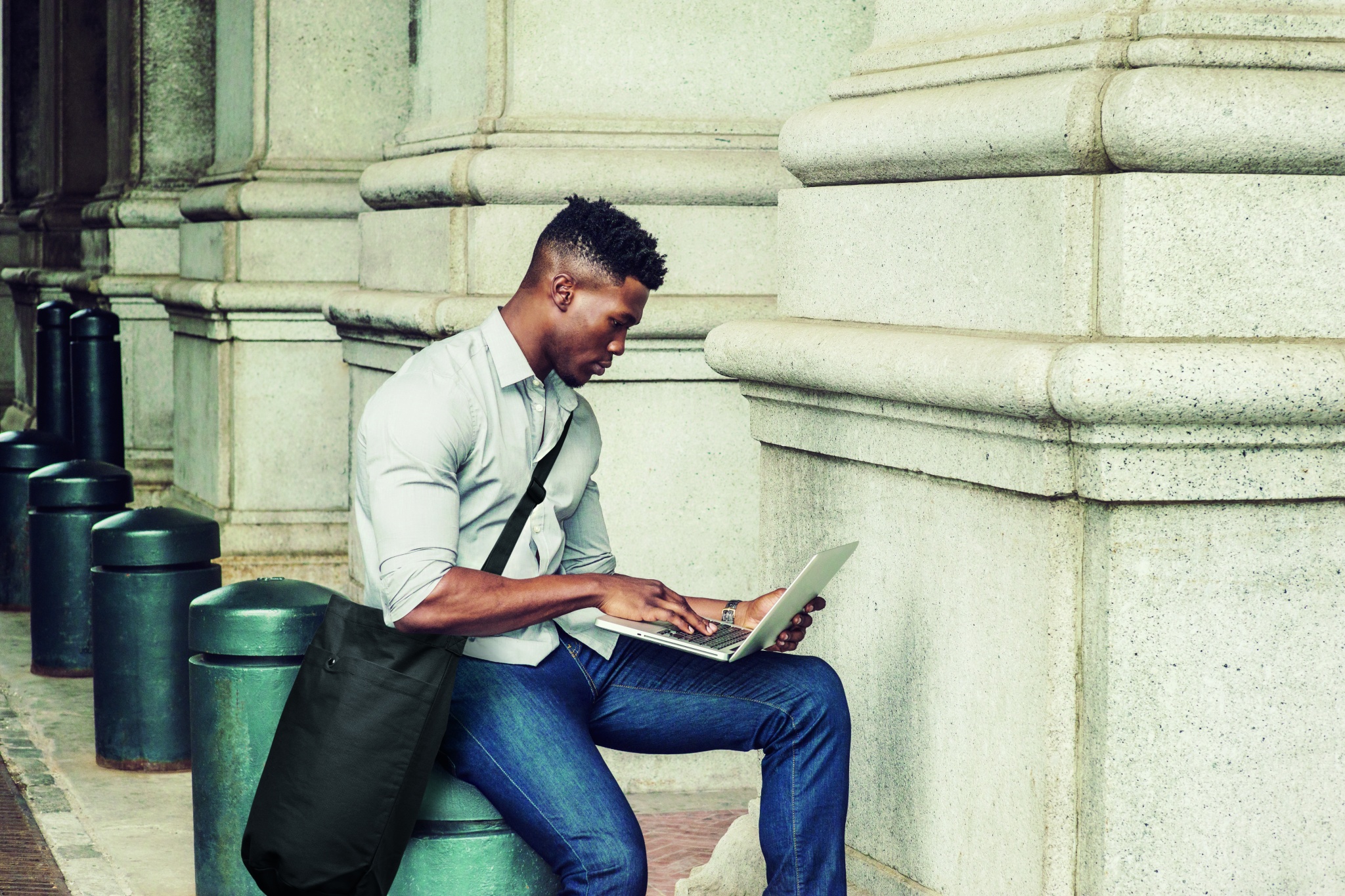 Kangaskassi, jossa pitkä säädettävä olkahihna ja suuri etutasku, jossa on nepparikiinnitys. Sisältää sisätaskun. Materiaali 270 gr/m²canvas.