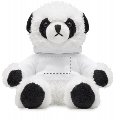 Pandakarhu pehmolelu, jolla on hupullinen paita. Ihanteellinen sublimointipainatusta varten.