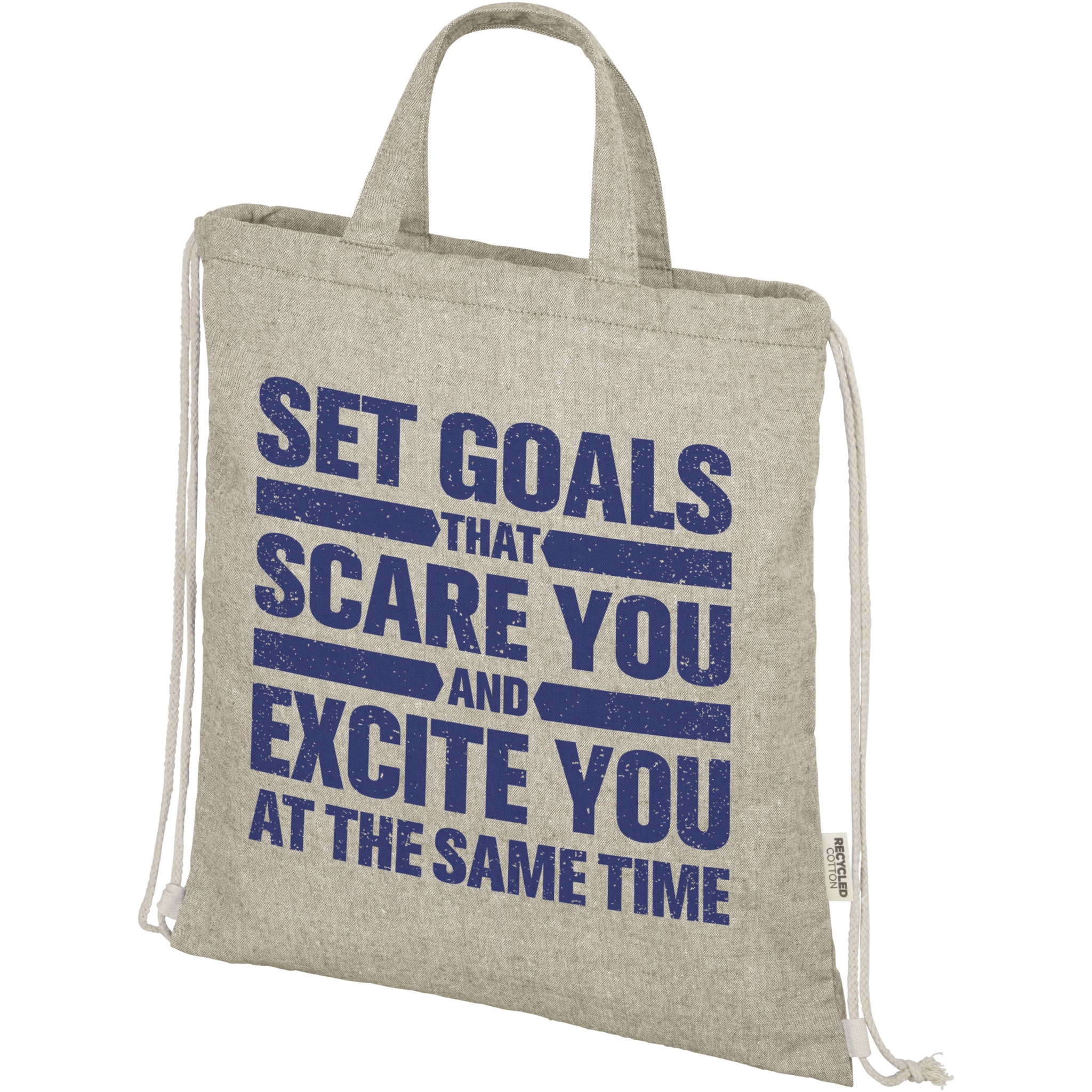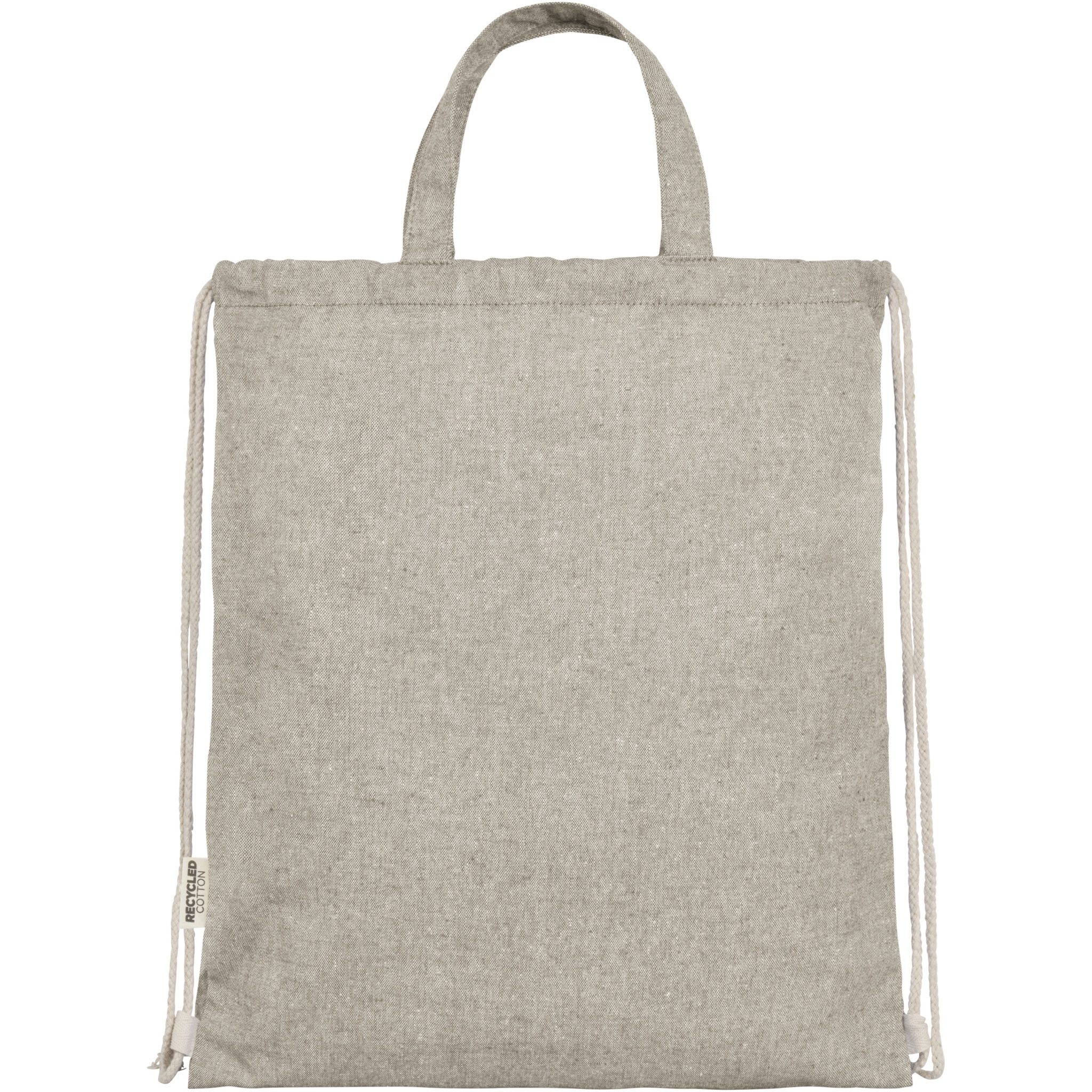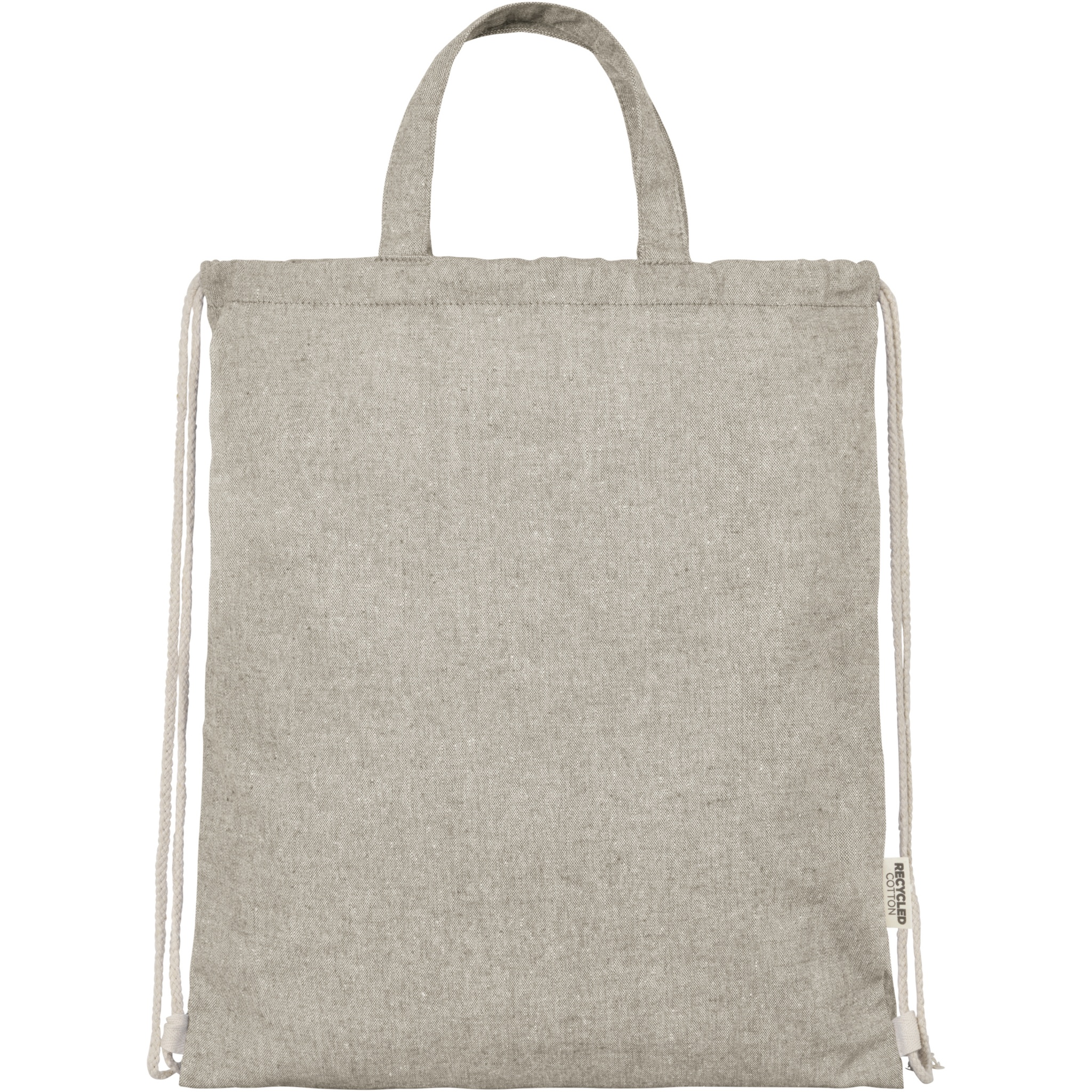 Kierrätetystä 150 g/m²-puuvillapolyesterisekoituksesta valmistettu reppu kiristysnyörillä. Suuri päälokero ja luonnonväriset puuvillaiset kiristysnyörit. Kierrätetty puuvilla valmistetaan valmistusmateriaalin ylijäämästä, jota syntyy tekstiilitehtaissa leikkaamisen aikana. Samankaltaiset värit sekoitetaan yhteen, eli reppua ei tarvitse värjätä erikseen. Kierrätyspuuvillan luonteesta johtuen väreissä voi olla pientä vaihtelua. Repulla on tämän ominaisuuden ansiosta autenttinen ulkonäkö. Jokaisen repun mukana tulee myös Aware™-jäljitin. Tämän innovatiivisen ominaisuuden avulla käyttäjät voivat jäljittää tuotteensa alkuperän ja matkan QR-koodin avulla, mikä lisää läpinäkyvyyttä toimitusketjussa ja edistää vahvempaa yhteyttä tuotteen ja sen tuotantoprosessin välillä. Kestää jopa 5 kg painon. Kahvan pituus: 14 cm.