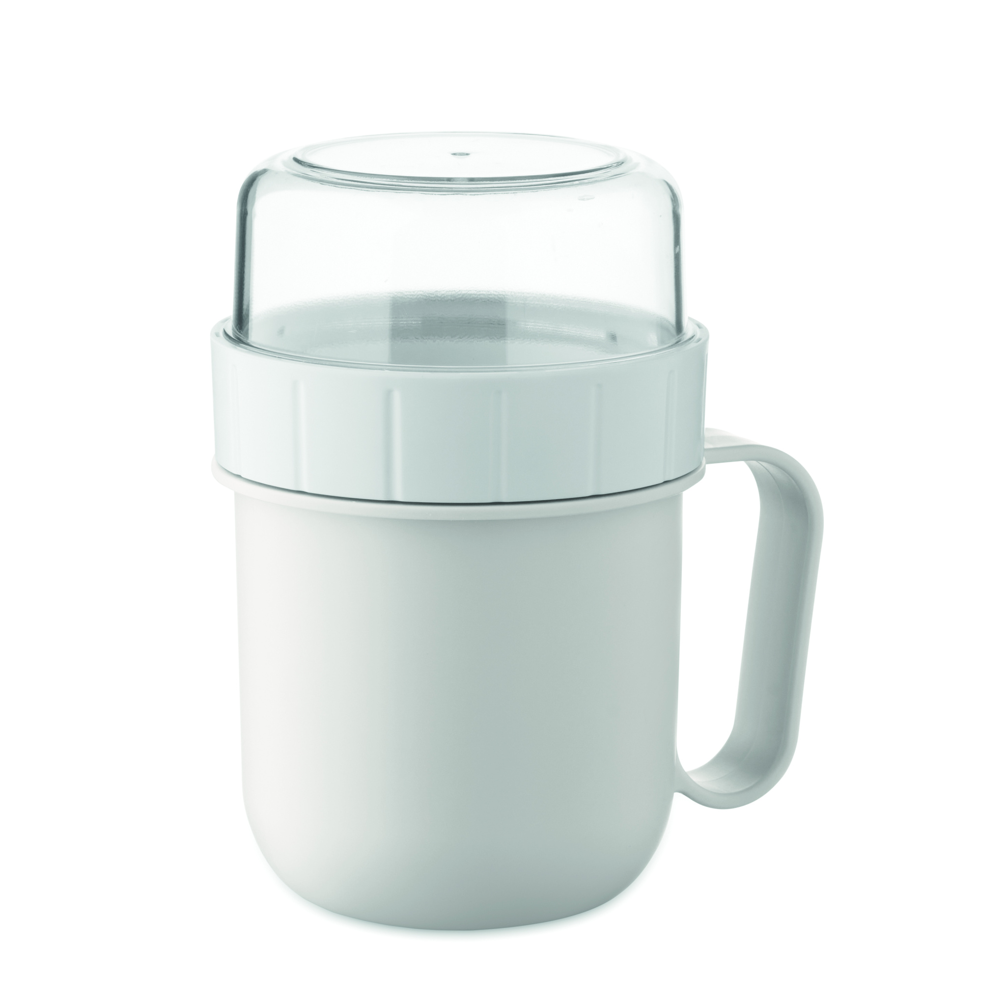 Aamiaista tai brunssia mukaan otettavaksi tarkoitettu kuppi PP- ja PS-korkissa. Sisältää kaksi erillistä rasiaa, jotka pitävät ainekset erillään. Tilavuus: 450 ml ja 160 ml. Vuotamaton.