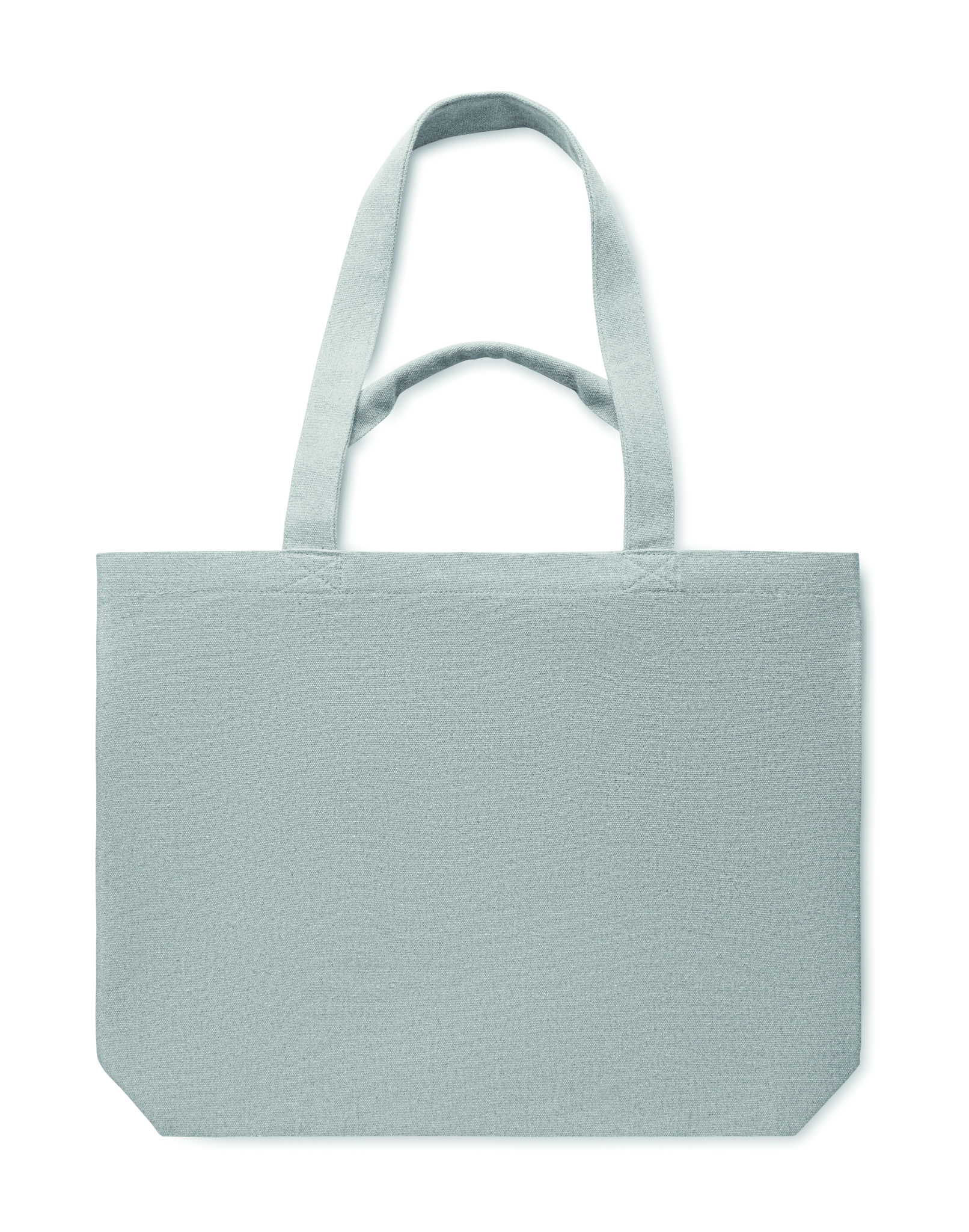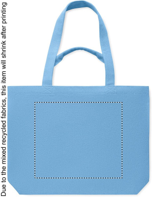 Ostos-/rantakassi kierrätetystä kankaasta (60 % kierrätettyä puuvillaa, 40 % kierrätettyä polyesteriä), jossa lyhyet ja pitkät kahvat. 320 g/m².