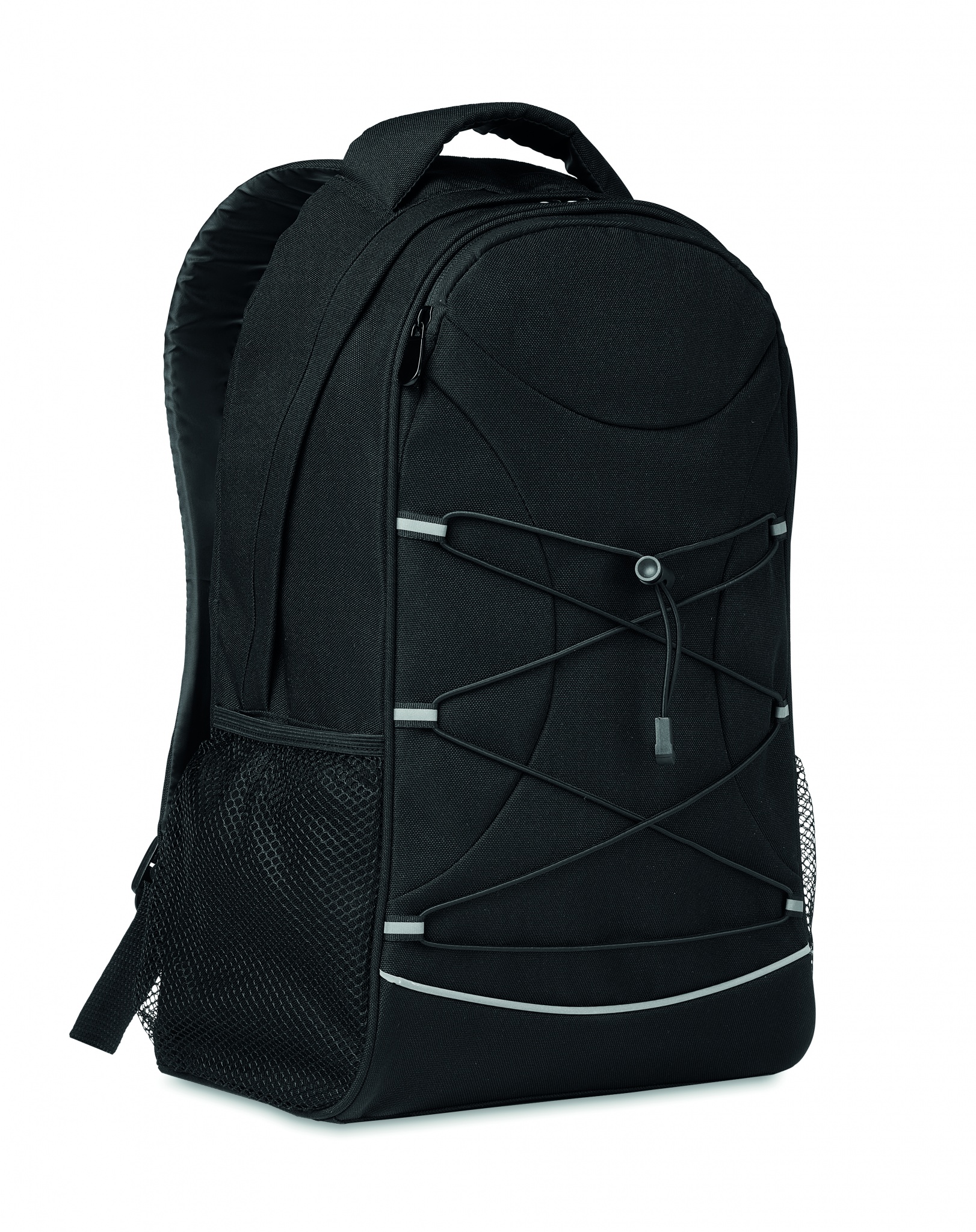 600D RPET- reppu heijastavalla etupaneelilla ja verkkotaskut molemmin puolin.