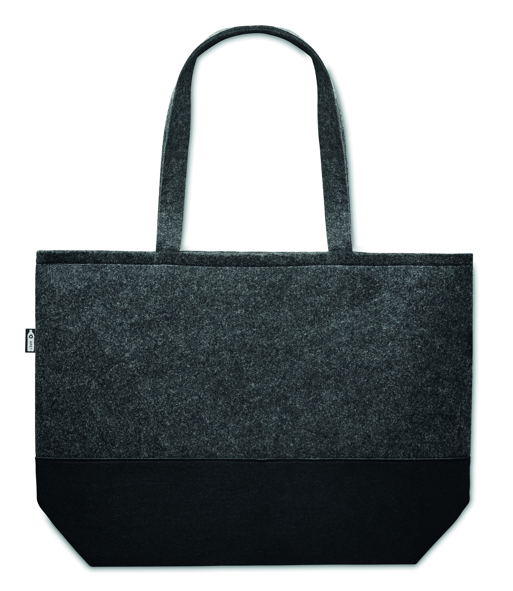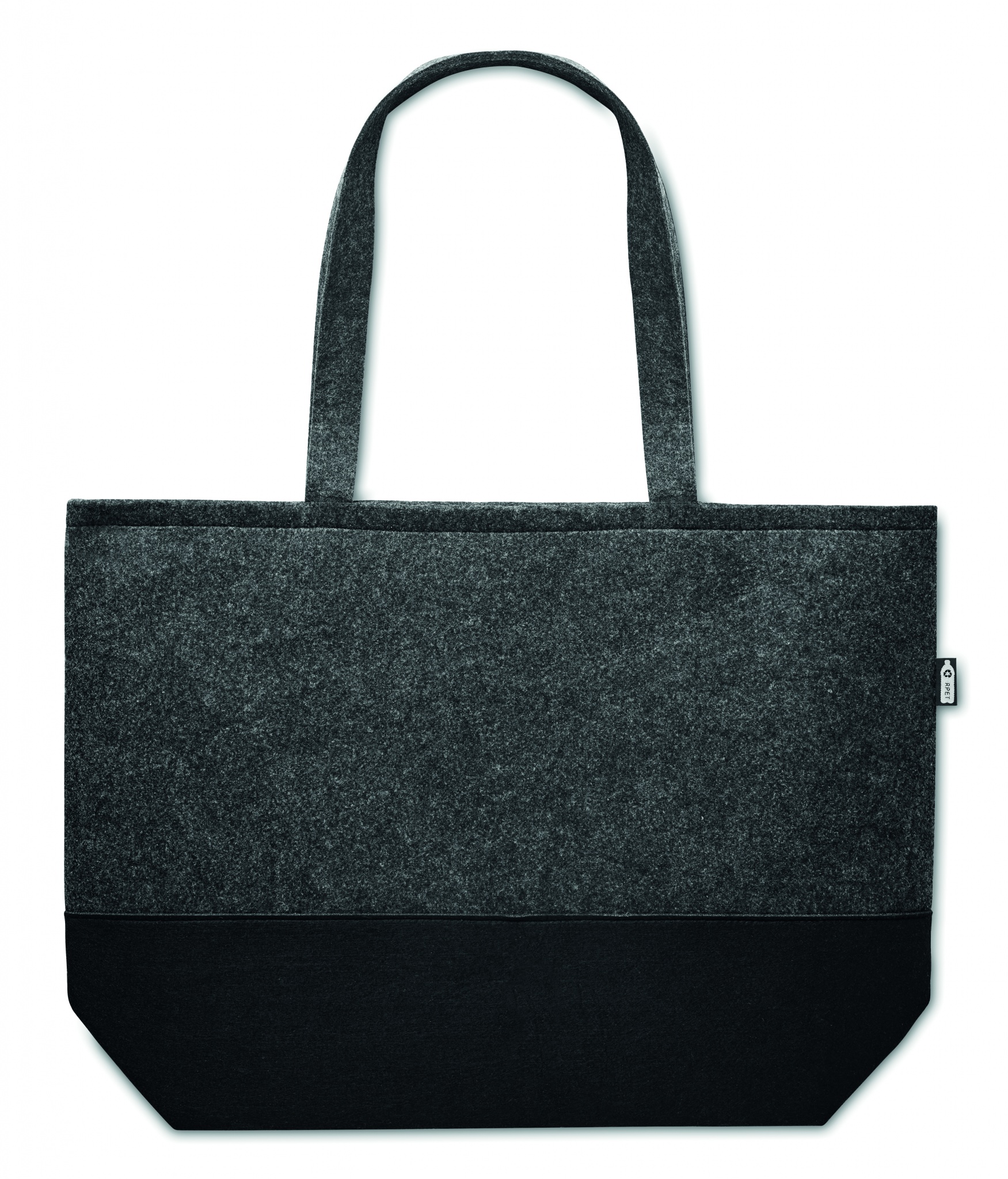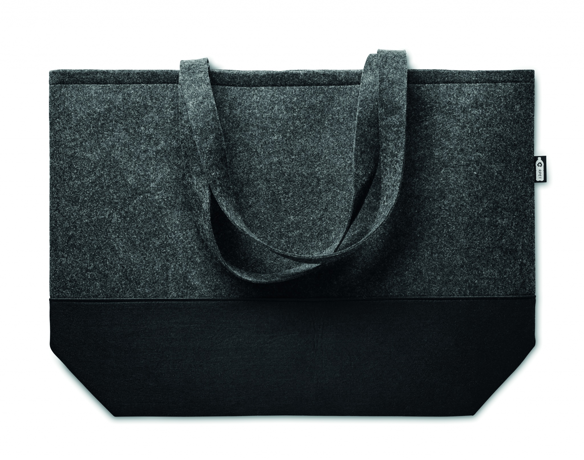 Kaksi sävyinen RPET huopakassi pitkillä kahvoilla.