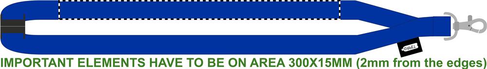 RPET-kaulanauha 20 mm leveä, metallinen koukku ja niskassa turvalukko. Sublimaatio painatus ainoastaan valkoiseen tuotteeseen.