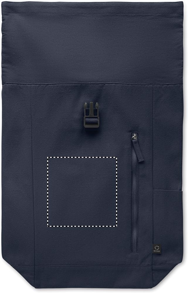Rullareppu koukulla suljettavalla lenkillä 390 g/m² kierrätettyä puuvillaa (80 %) ja kierrätettyä polyesteriä (20 %). Vetoketjullinen etutasku.