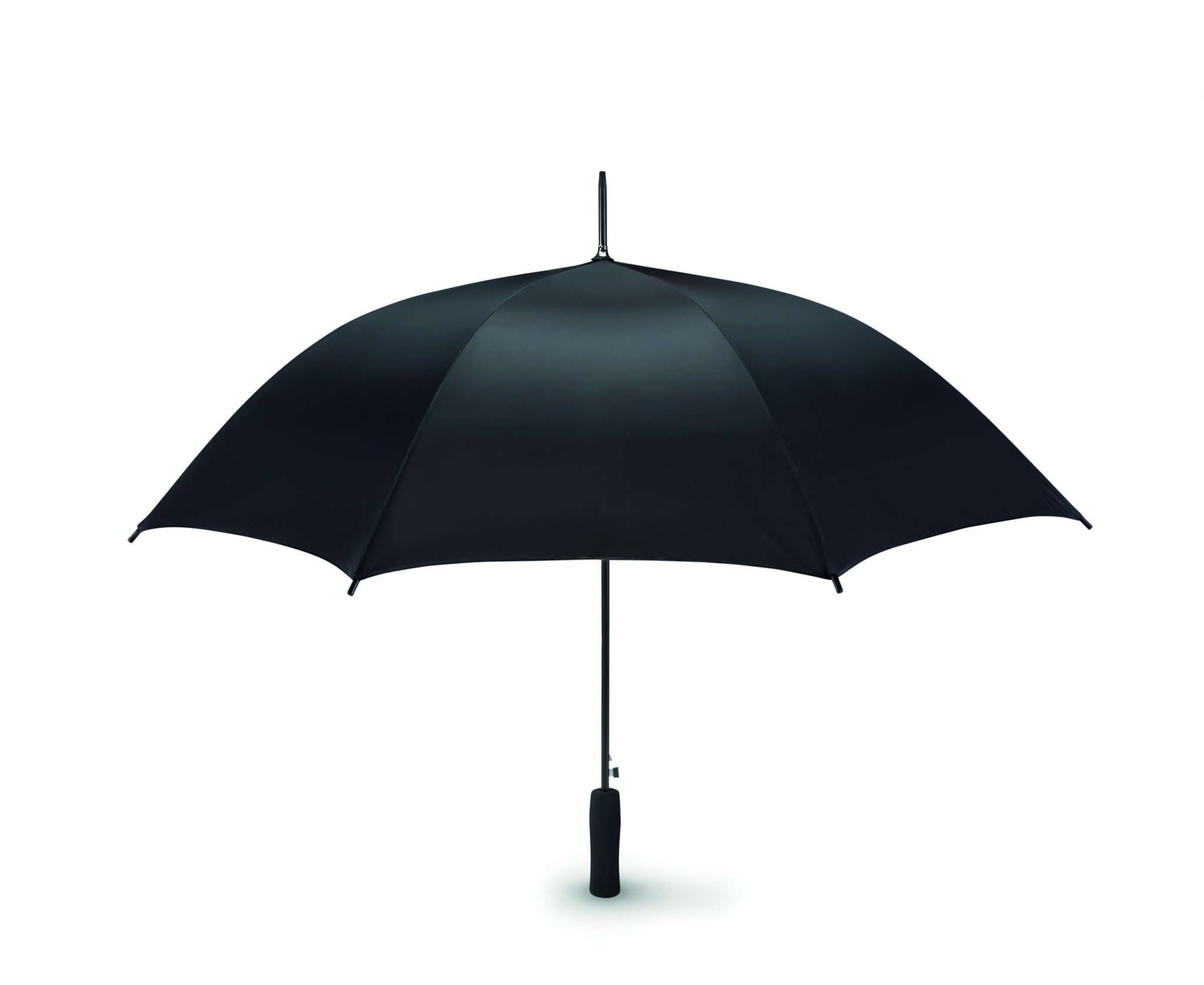 190T pongee 23 tuuman sateenvarjo, automaattii avauksella. Mustalla päällystetty metallivarsi, ruoteet ja muovikärki.