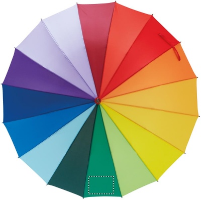 190T pongee 27 tuuman saateenvarjo sateenkaaren värein, puisella kahvalla, laiskuitu ruoteilla ja mustalla päällystetyillä metallisilla päädyillä.
