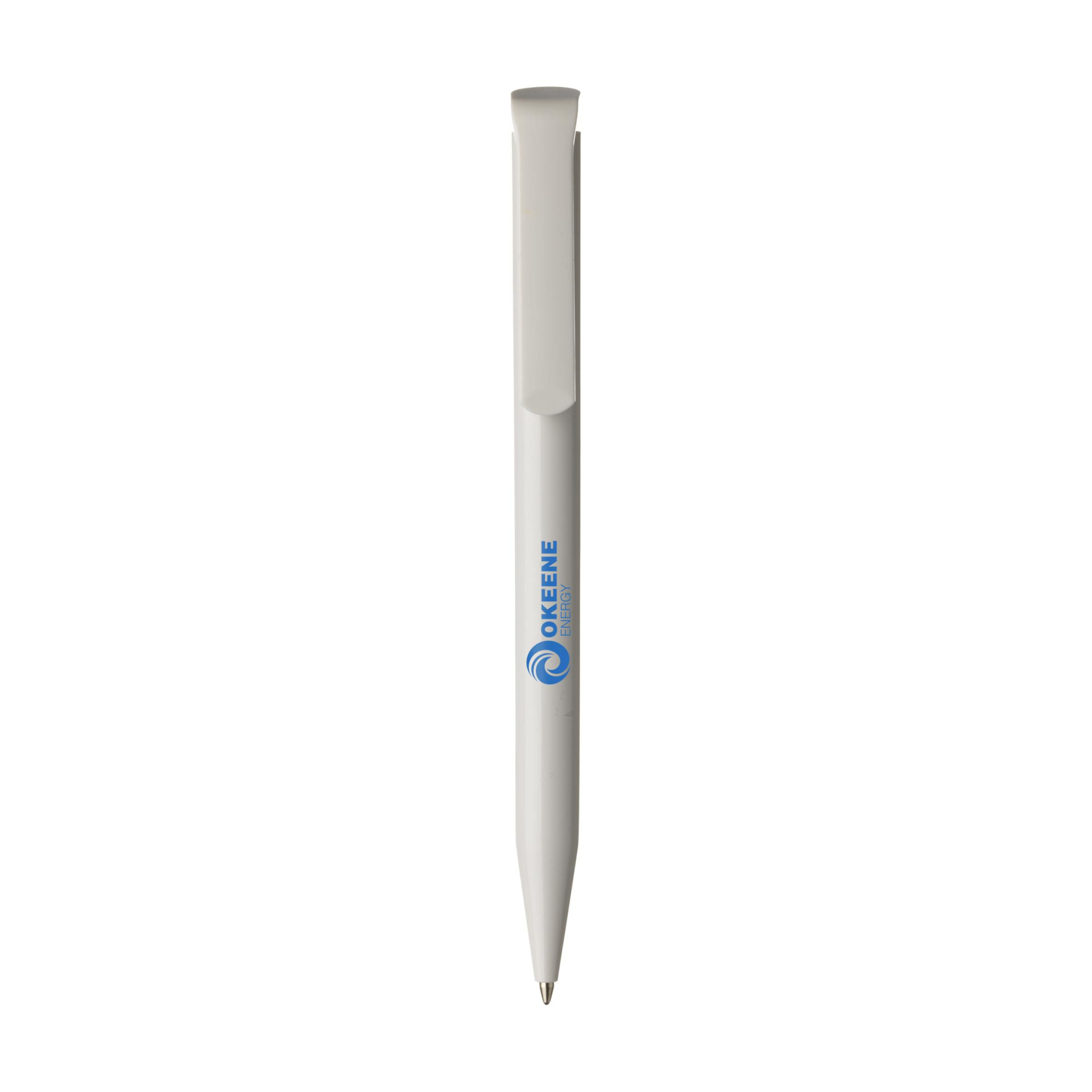 Sinisellä musteella kuulakärkikynä Senator®-merkiltä. Kiillotettu piippu ja värillinen klipsi/painin. Valmistettu Saksassa.