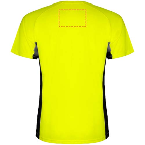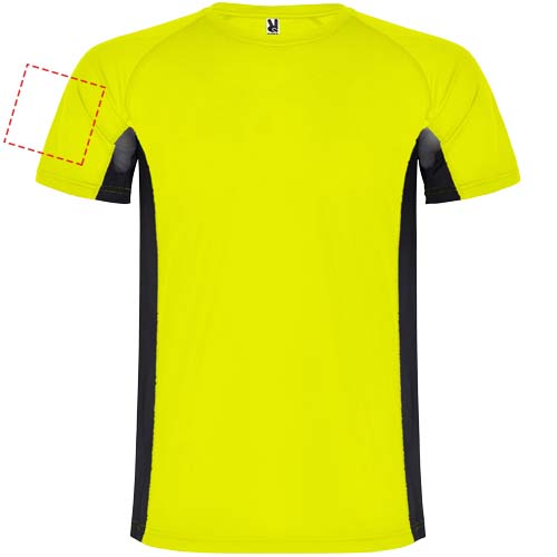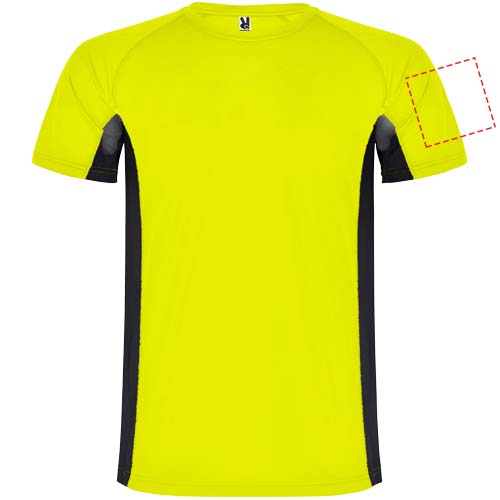 Tekninen ja hengittävä kangas. Kahden polyesterikankaan yhdistelmä: Pääkangas bird's eye -kangasta, reunaosat ja hihan sisäpuoli mikrokuitukangasta. Pyöreä pääntie, jossa vahvistetut koristesaumat sisäpuolella. Irrotettava etiketti.