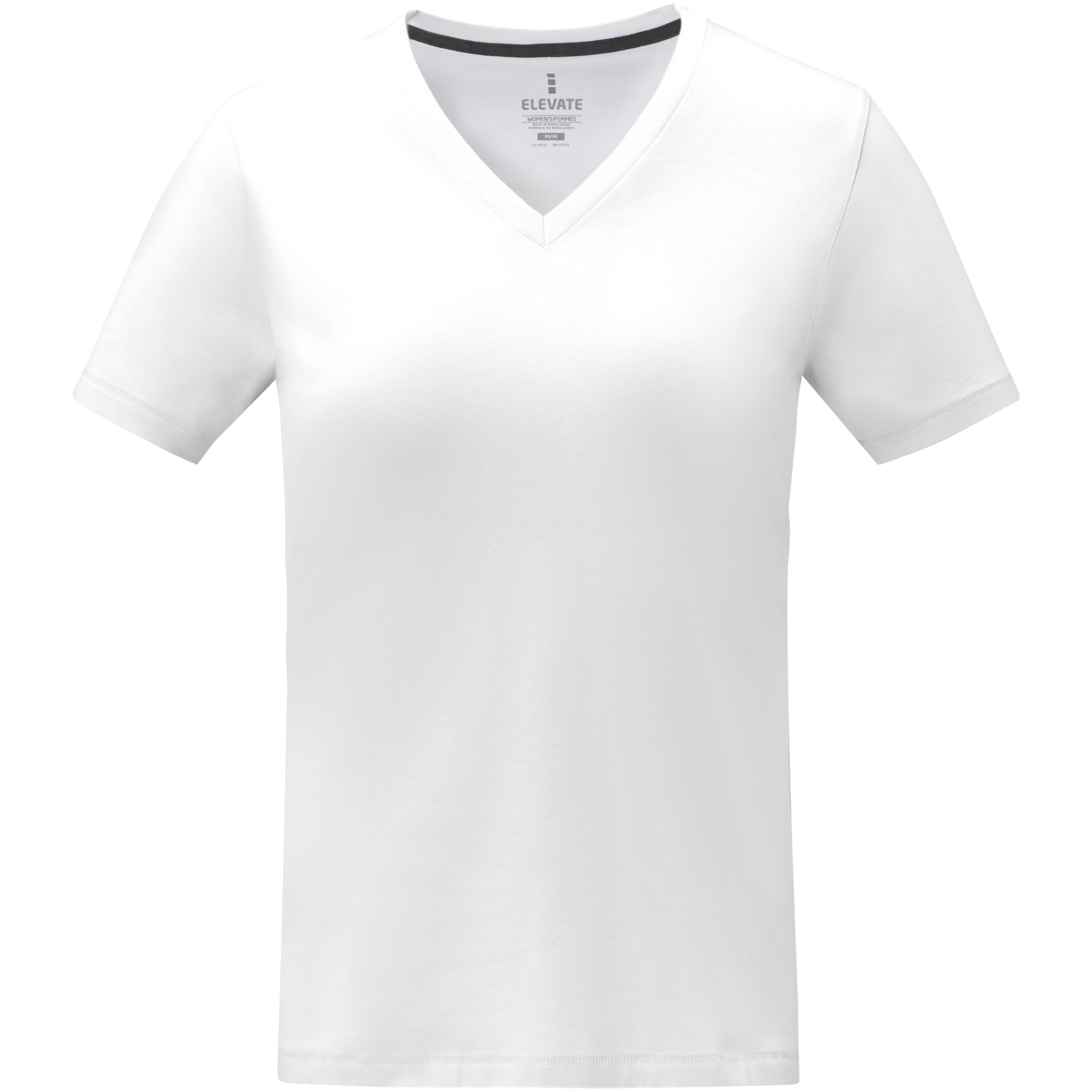 160 g/m2 puuvillasta valmistettu Somoto naisten lyhythihainen V-aukkoinen t-paita sopii moniin tilaisuuksiin ja on mukava lisä mihin tahansa vaatekaappiin. Rengaskehrättyä puuvillaa, lanka on vahvempaa ja sileämpää sekä kangas kestävämpää. Materiaali mahdollistaa laadukkaan brändäyksen. Naisten leikkaus ja sivusaumat, jotka takaavat hyvän istuvuuden. Painettu Elevate-brändi niskassa sisäpuolella lisää yleistä mukavuutta ja vahvistetut olkapääsaumat takaavat istuvuuden myös pitkäaikaisen käytön jälkeen.