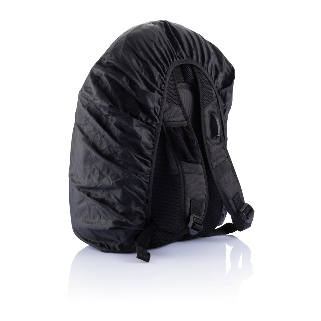 1680D polyesterinen reppu kannettaville tietokoneille tarjoaa ainutlaatuisen tasapainon mukavuuden ja ulkoilmasuojan välillä. Repun kannessa olevat taskut sopivat kaikkiin tarpeisiin, pehmustettu osio kannettavalle tietokoneelle, iPad-pidike, kynälenkit ja verkkotaskut. Olkahihnassa on audioliitin kuulokkeita varten, sekä kotelo aurinkolaseille. Mukana myös sadesuoja. Rekisteröity design®