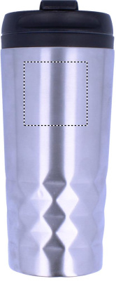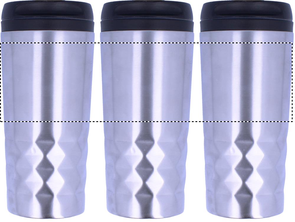 Kaksiseinäinen ruostumattomasta teräksestä valmistettu 280 ml termosmuki, PP- muovi kannella.