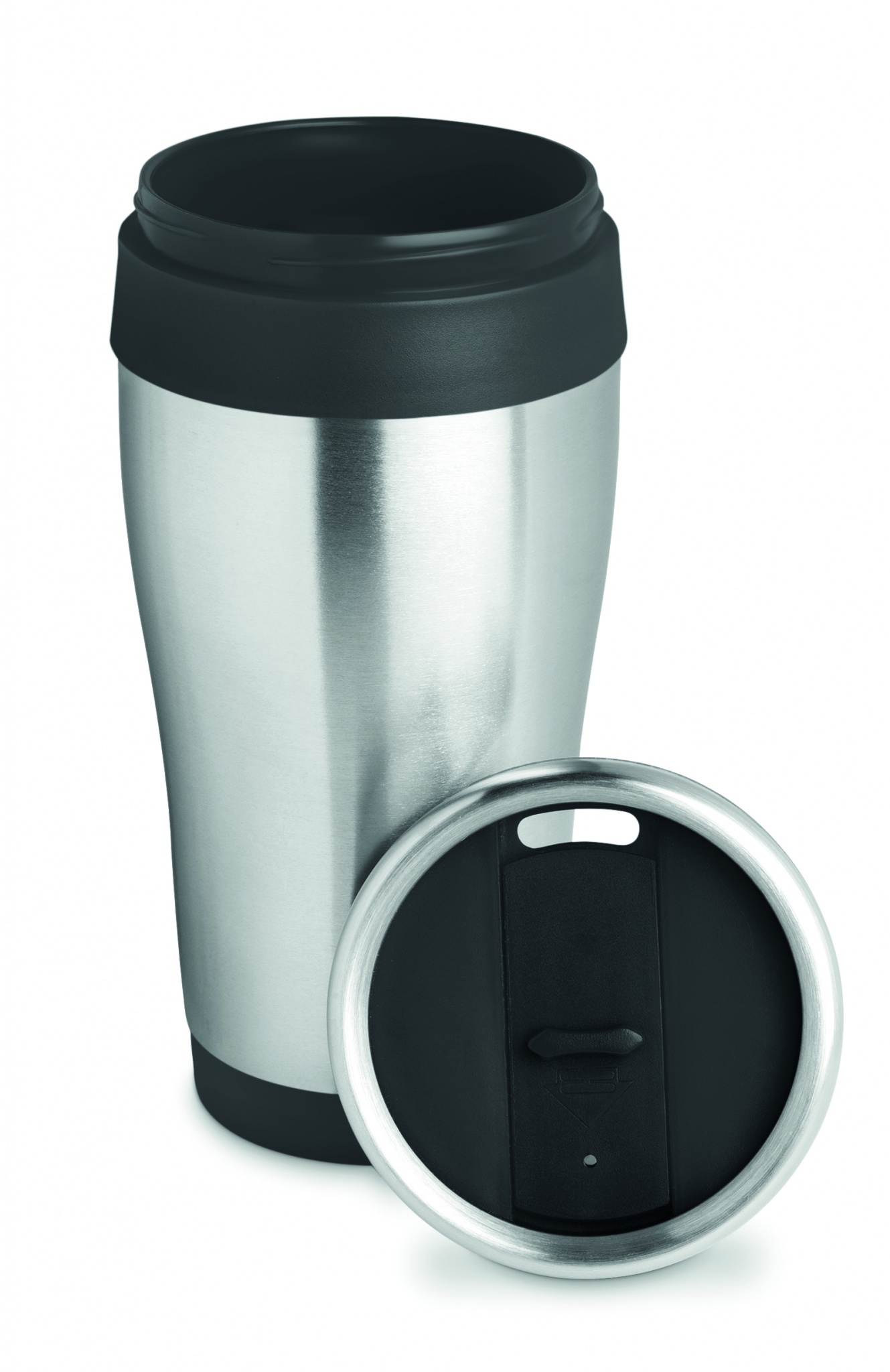 Kaksiseinäinen termosmuki, ruostumattomasta teräksesta ja PP-muovista, 455 ml.