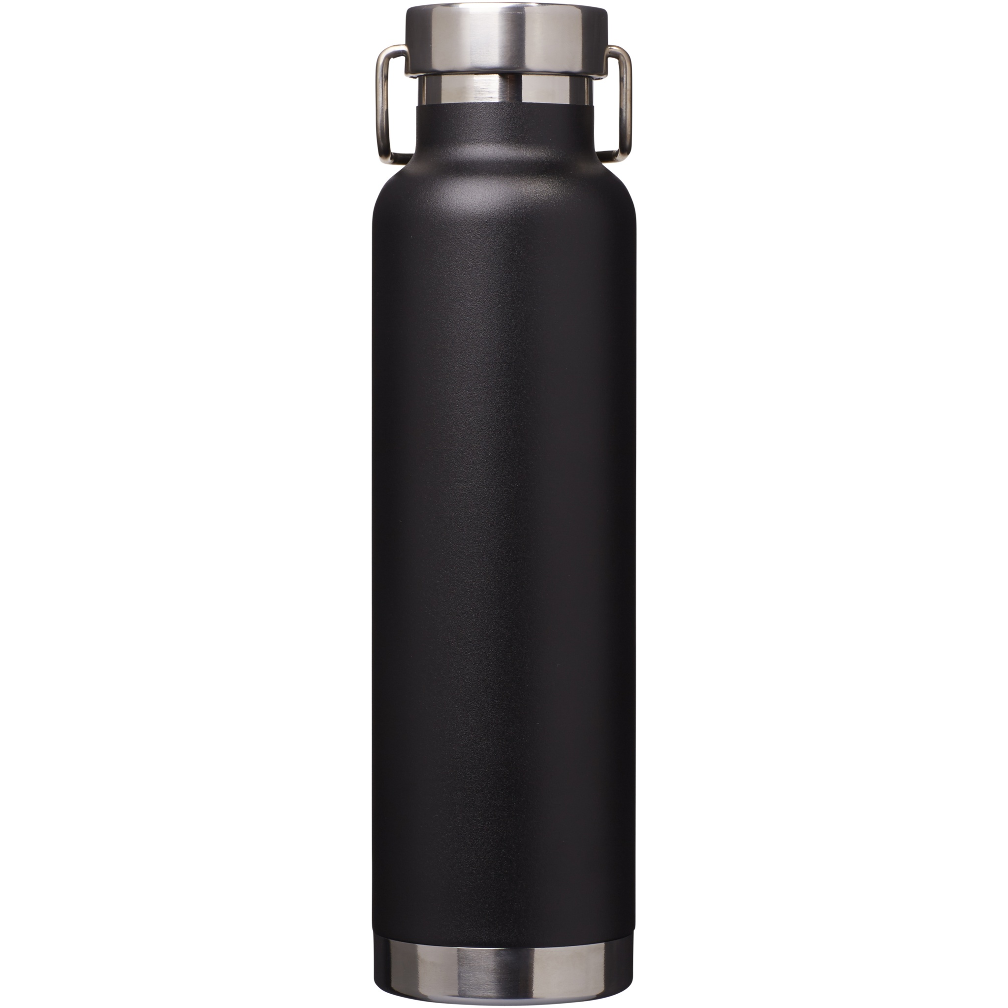 Kestävää ruostumatonta terästä. Kuparieristetty tyhjiörakenne, jonka ansiosta juoma pysyy kylmänä 48 tuntia ja vähintään 12 tuntia kuumana. Rakenne estää myös nesteen tiivistymisen pullon ulkopuolelle. Trendikäs, kestävä jauhemaalaus. Ruostumattomasta teräksestä valmistettu ruuvattava kierrekorkki ja kestävä käsilenkki. Leveä suuosa helppottaa täyttöä ja kaatamista. Täydellinen jääpaloille. Tilavuus 650 ml. Avenue-lahjapakkaus.