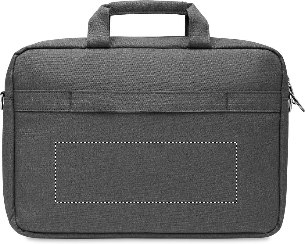 Tietokonelaukku 15 tuuman tietokoneelle 600D RPET-polyesteriä. 2 sisäistä päälokeroa ja suuri vetoketjullinen etutasku jossa päällä on pienempi vetoketjullinen tasku. Irrotettava ja säädettävä olkahihna. Trolleypidike selkäpuolella.