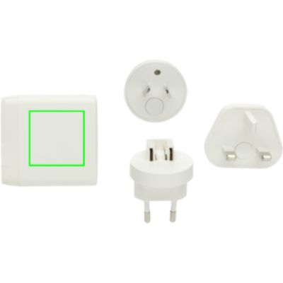 Lataa missä tahansa Travelcharge Pro -laitteella. Siinä on 2 USB C -porttia ja 2 USB A -porttia, joiden avulla voit ladata minkä tahansa mobiililaitteen, jonka otat mukaan matkoillesi. Integroitu pistoke Yhdysvaltoja varten ja lisäksi EU:n, Yhdistyneen kuningaskunnan ja AUS:n pistoke, jolla voit ladata yli 100 maassa ympäri maailmaa. Max: 5V/3A. Sisääntulo: 1,5 mm: AC100-240V. Sovitin toimitetaan kätevässä matkapussissa, jotta voit tuoda sen mihin tahansa kohteeseen. Laturi on valmistettu kierrätetystä ABS:stä. Kokonaisuudessaan kierrätettyä sisältöä: 57 % tuotteen kokonaispainosta. RCS-sertifiointi takaa täysin sertifioidun toimitusketjun kierrätysmateriaaleille. PVC-vapaa. Pakattu FSC® mix -pakkaukseen.