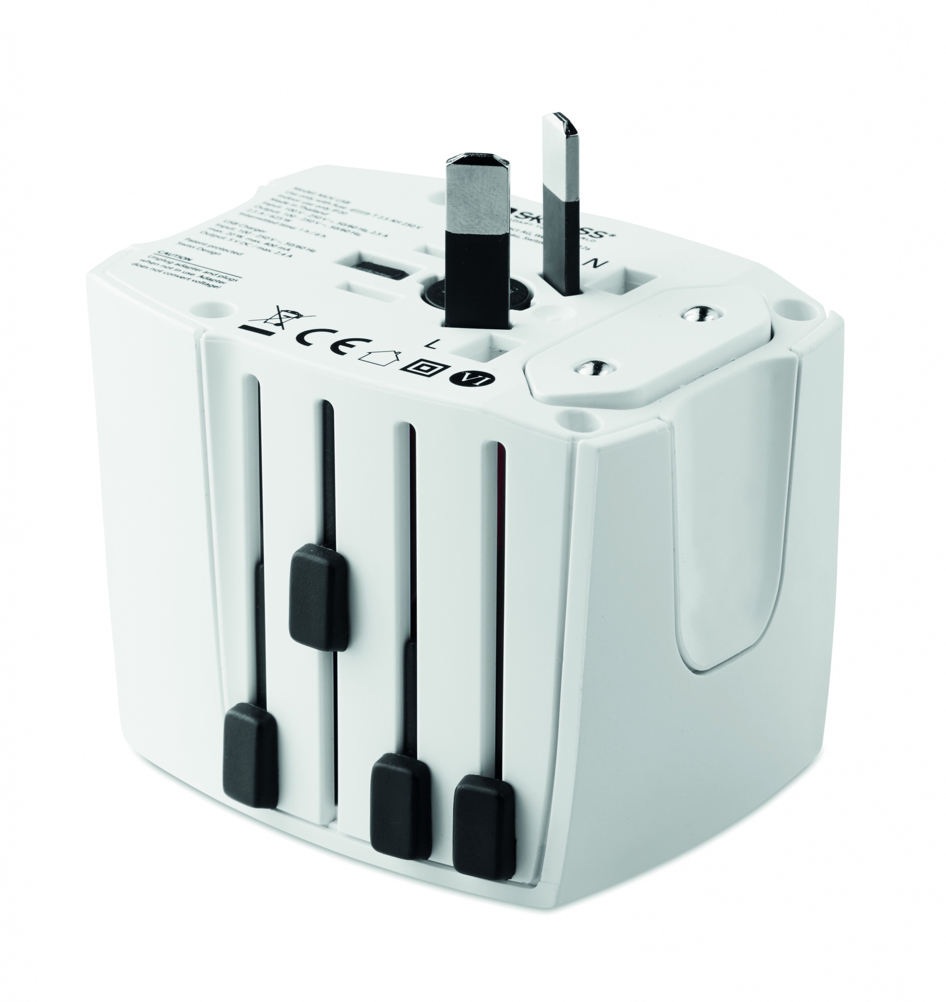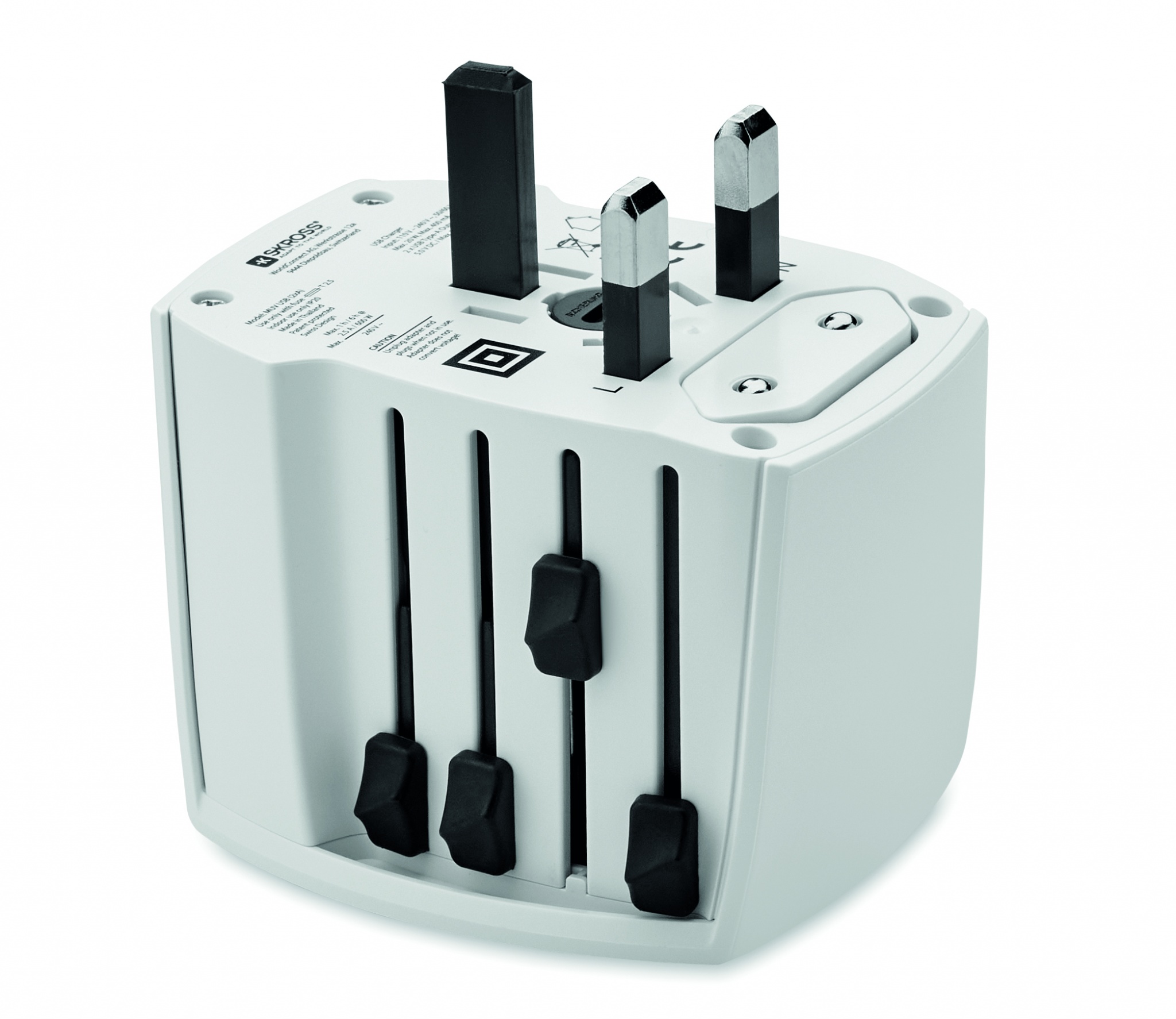 SKROSS®- kompakti monipuolinen MUV USB -adapteri tekee kaiken mitä haluat, yhdellä kertaa. Sovitin tarjoaa oikean yhteyden sähkökäyttöiseen partakoneeseesi, kaksois-USB-laturimoduuli voi ladata akut sekä älypuhelimiin ja tabletteihin. 2-napainen, maadoidettu. Täyttää kaikki kansainväliset turvallisuuteen liittyvät standardit ja normit, turvallinen lasten käytettäväksi.