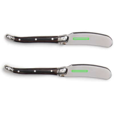 Ylellinen kahden veitsen setti ruostumattomasta teräksestä. Nämä veitset ovat täydellisiä voin, hillon ja muiden herkkujen levittämiseen leivälle, paahtoleivälle ja leivoksille. Korkealaatuiset terät ja tukevat puukomposiittikahvat takaavat miellyttävän nautinnoin. Setti on pakattu ylelliseen lahjalaatikkoon, mikä tekee siitä ihanteellisen lahjan mihin tahansa tilaisuuteen. Voit myös postittaa sen kirjemaksulla.