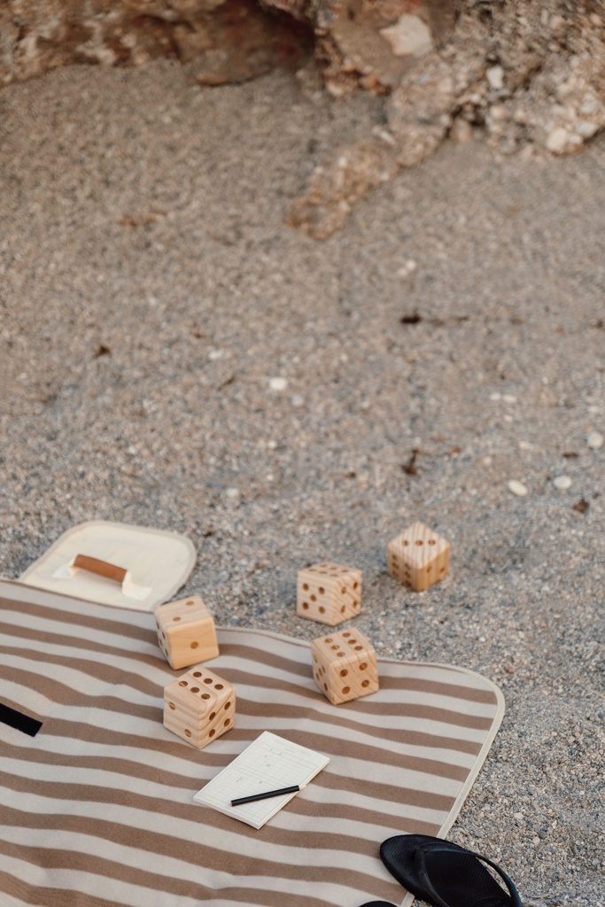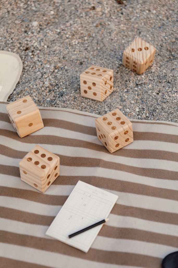 Outdoor yacht -peli on klassinen noppapeli, joka sopii erinomaisesti ihaniin ulkoilupäiviin. Pelin tavoitteena on saada mahdollisimman korkea pistemäärä heittämällä ja yhdistelemällä noppia eri tavoin. Peli on helppo oppia, ja sitä voivat pelata kaikenikäiset. Mukana 5 noppaa, mitoiltaan 7 x 7 x 7 cm, muistilehtiö ja kynä. Pakattu puuvillapussiin. Mukana ohjekirja. Kaikki puuosat on valmistettu korkealaatuisesta FSC®-sertifioidusta mäntypuusta, mikä takaa puun olevan peräisin vastuullisesti hoidetuista metsistä.